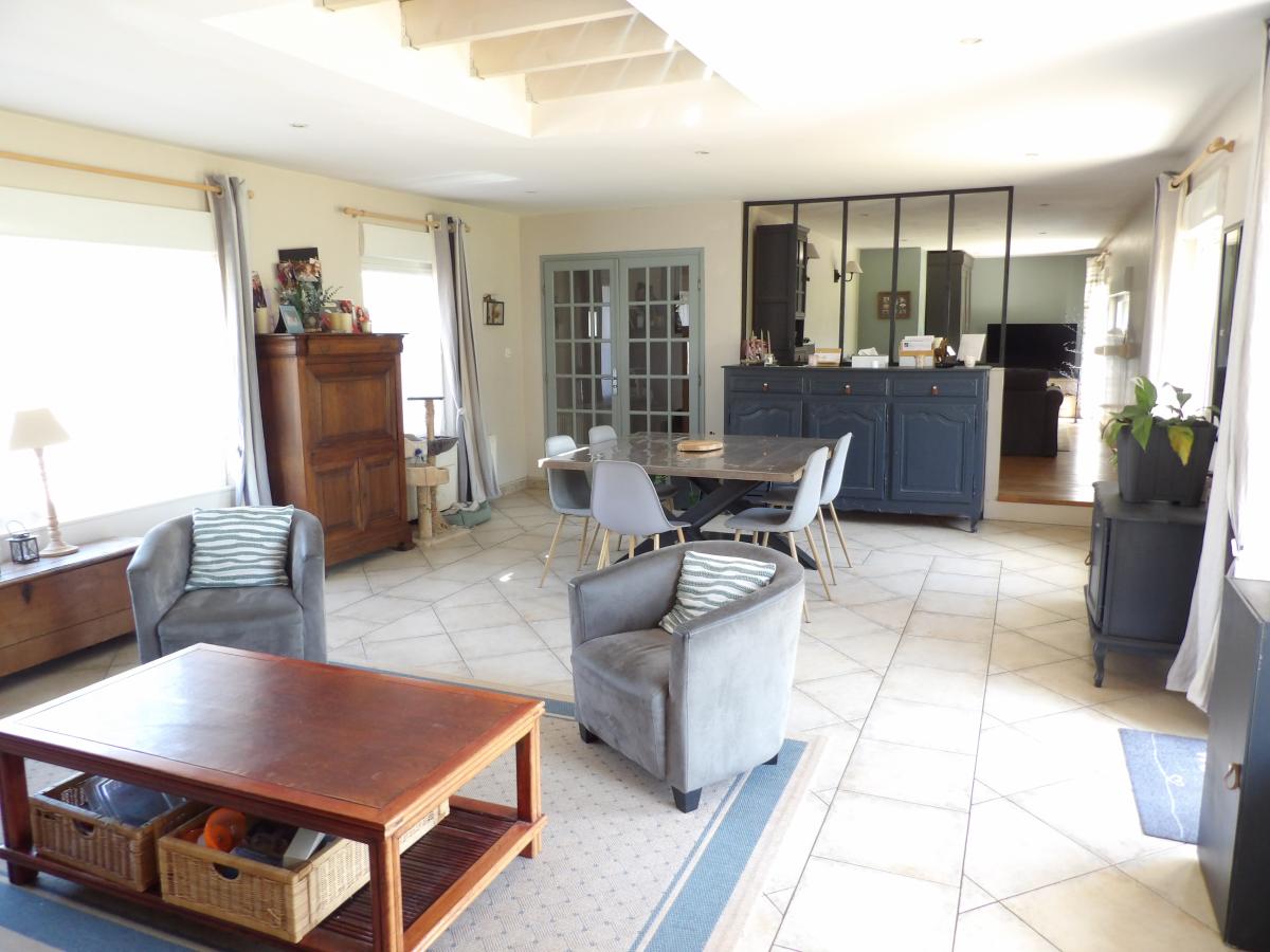 Offrant une surface habitable de 190 m² sur un terrain de 3185 m², elle se compose au rez-de-chaussée d'une entrée, un salon-séjour, une cuisine équipée, un 2ème salon, une salle de bains et un cellier.