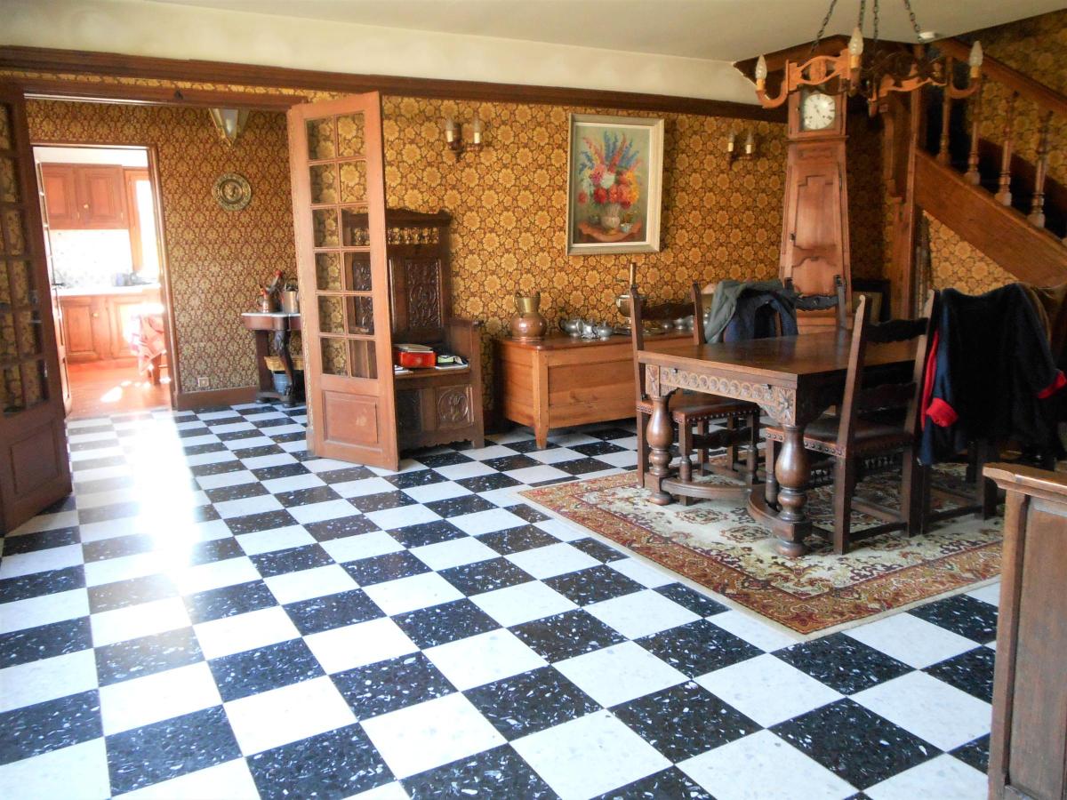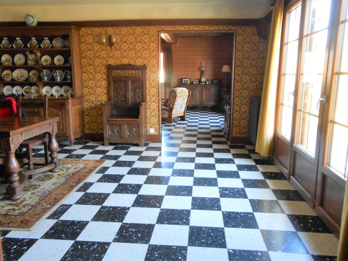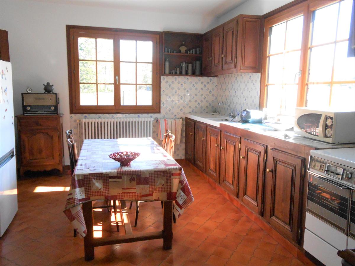 - Au rez-de-chaussée : Une entrée avec placard, une cuisine spacieuse d'environ 16 m², une salle à manger (29 m²) avec une belle hauteur sous plafond donnant sur le salon (36 m²) avec poutres apparentes et équipé d'une cheminée, une chambre, wc.