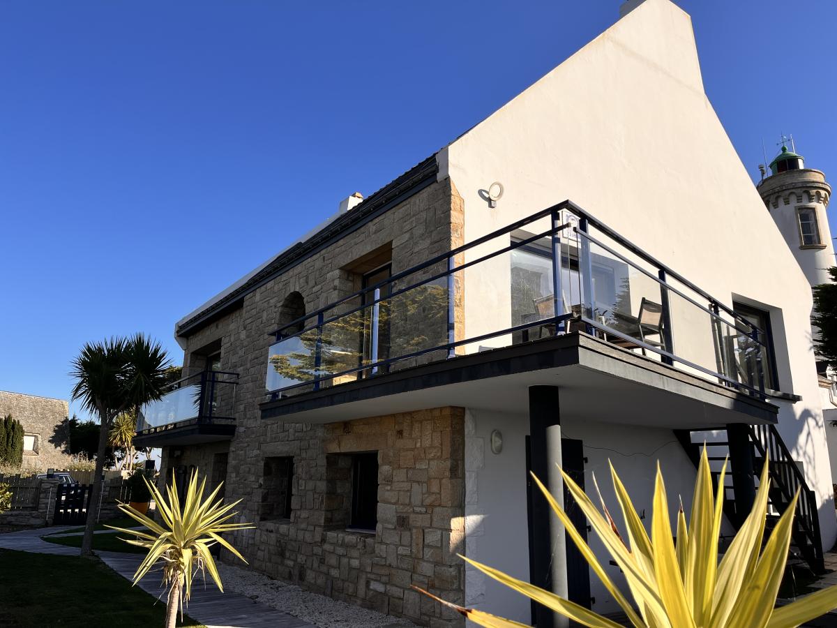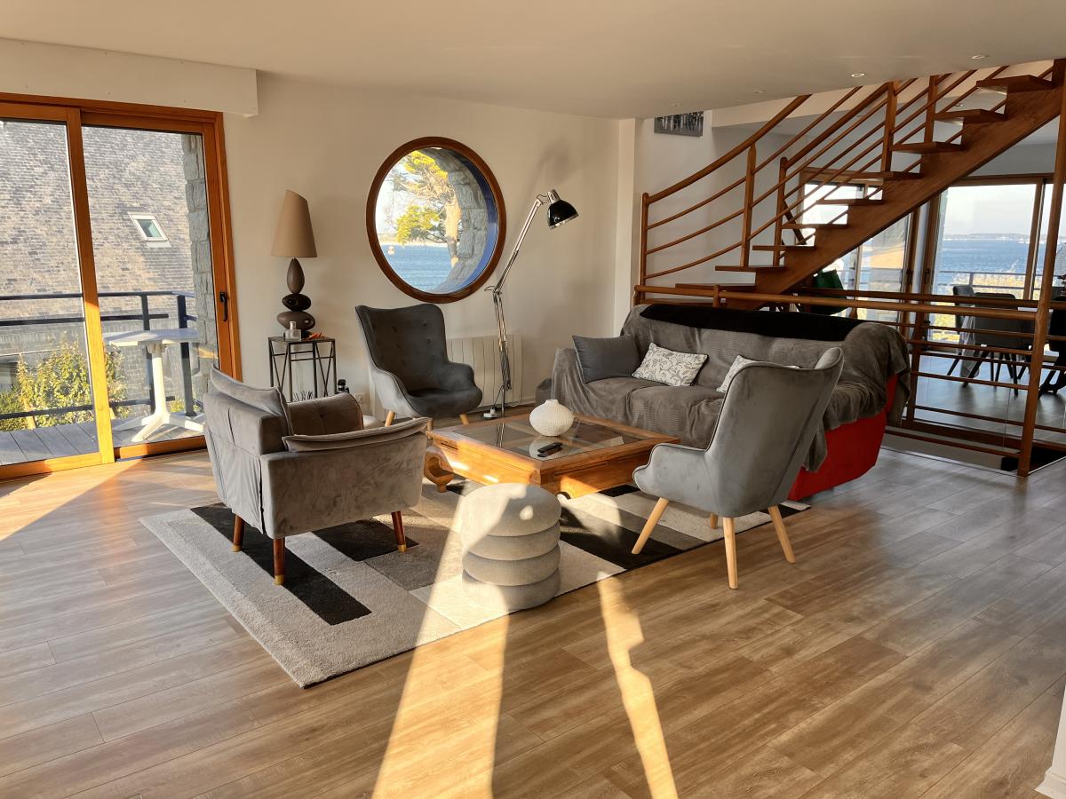 Au première étage, avec vue panoramique sur l'océan, on découvre un séjour double avec cheminée, une salle à manger, un cuisine aménagée et équipée, une chambre avec salle d'eau et wc.