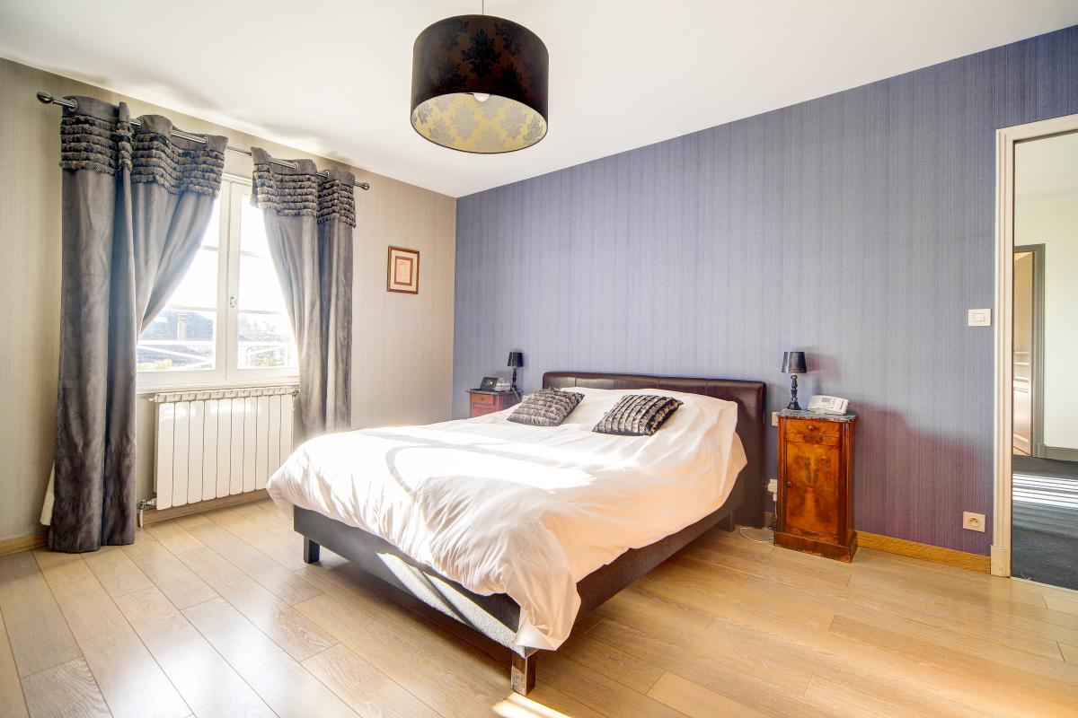 A l'étage : palier, 3 chambres dont 1 avec salle de bains attenante et dressing, salle d'eau, lingerie.