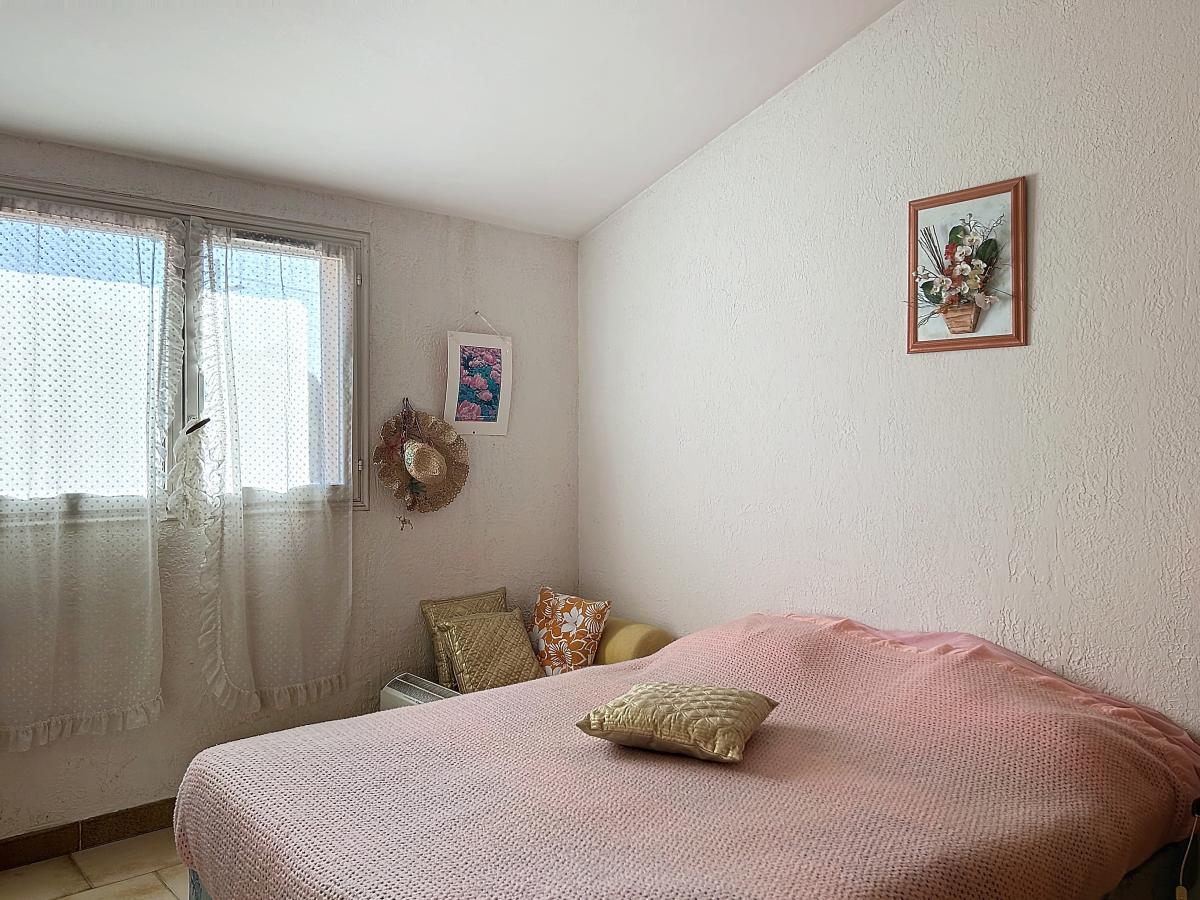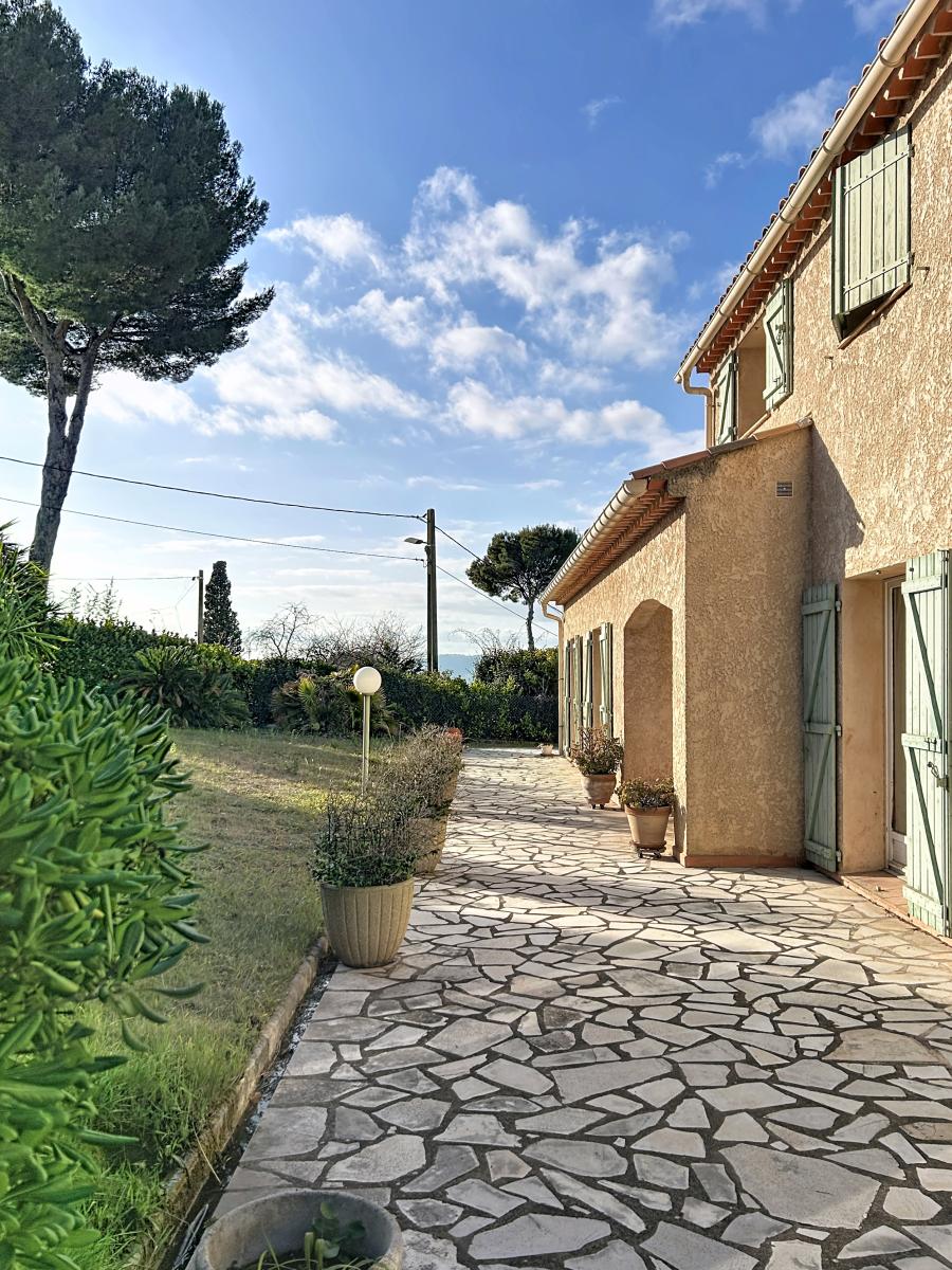Répartie sur trois niveaux, elle dispose de beaux volumes, avec un aperçu mer depuis la terrasse de type tropézienne à l’étage.