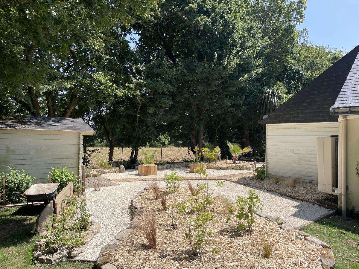 La propriété est complétée par un garage, un atelier, ainsi que deux cabanons de jardin, offrant de multiples possibilités de stockage et d’aménagement.