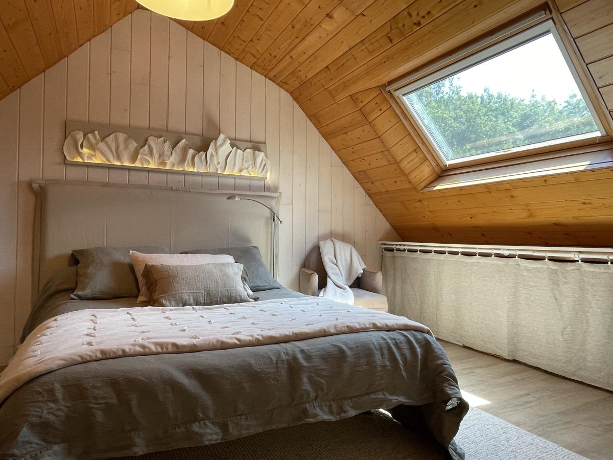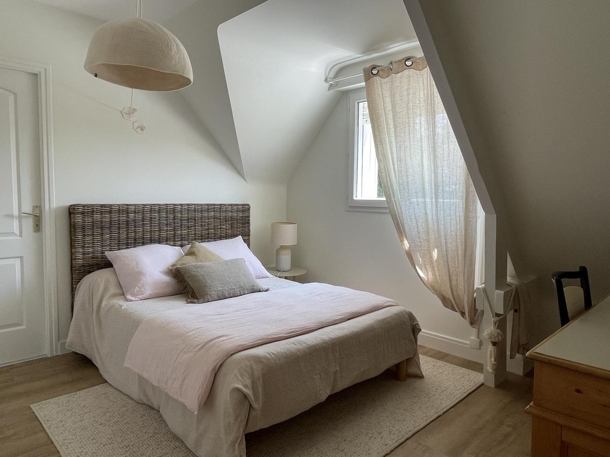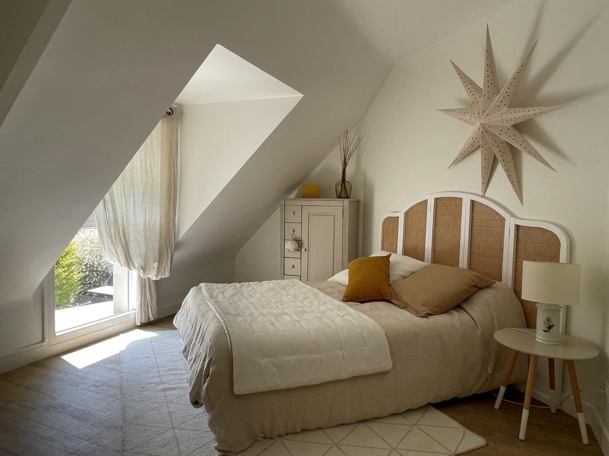 À l’étage, l’espace nuit se compose de plusieurs chambres, d’une salle de bains, de WC et d’espaces de rangement, permettant d’accueillir famille et invités dans d’excellentes conditions.