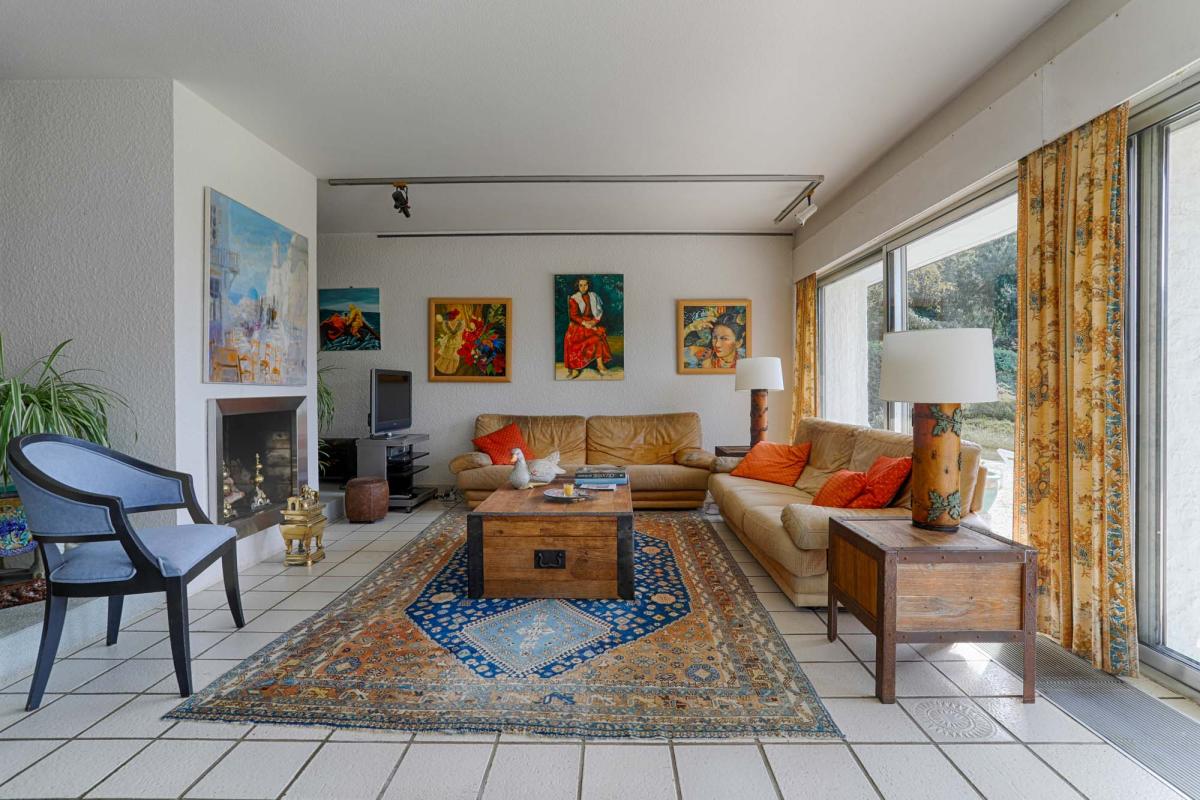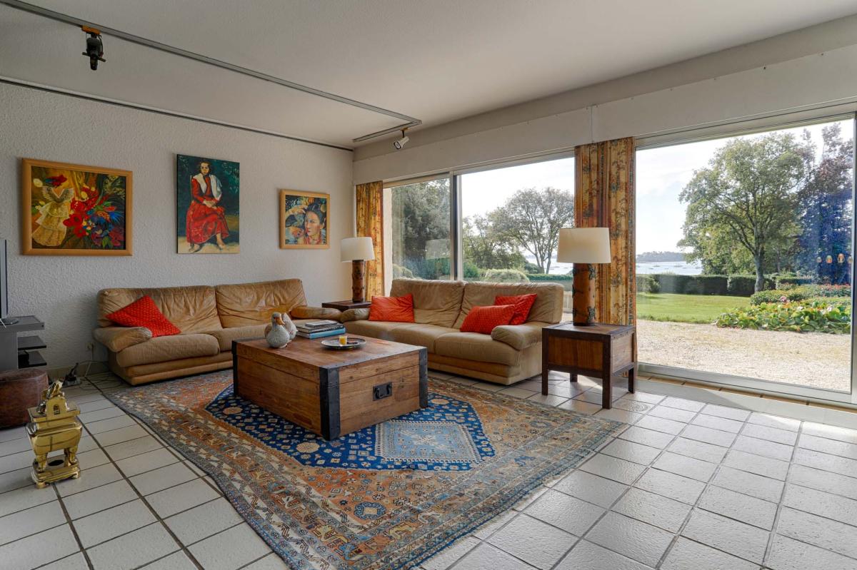 La grande pièce de vie lumineuse de plus de 50 m² ouvre largement sur le paysage marin et devient le cœur de la maison, propice aux moments partagés et à la contemplation.