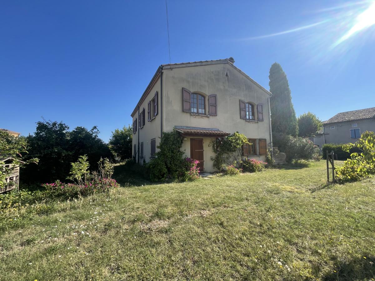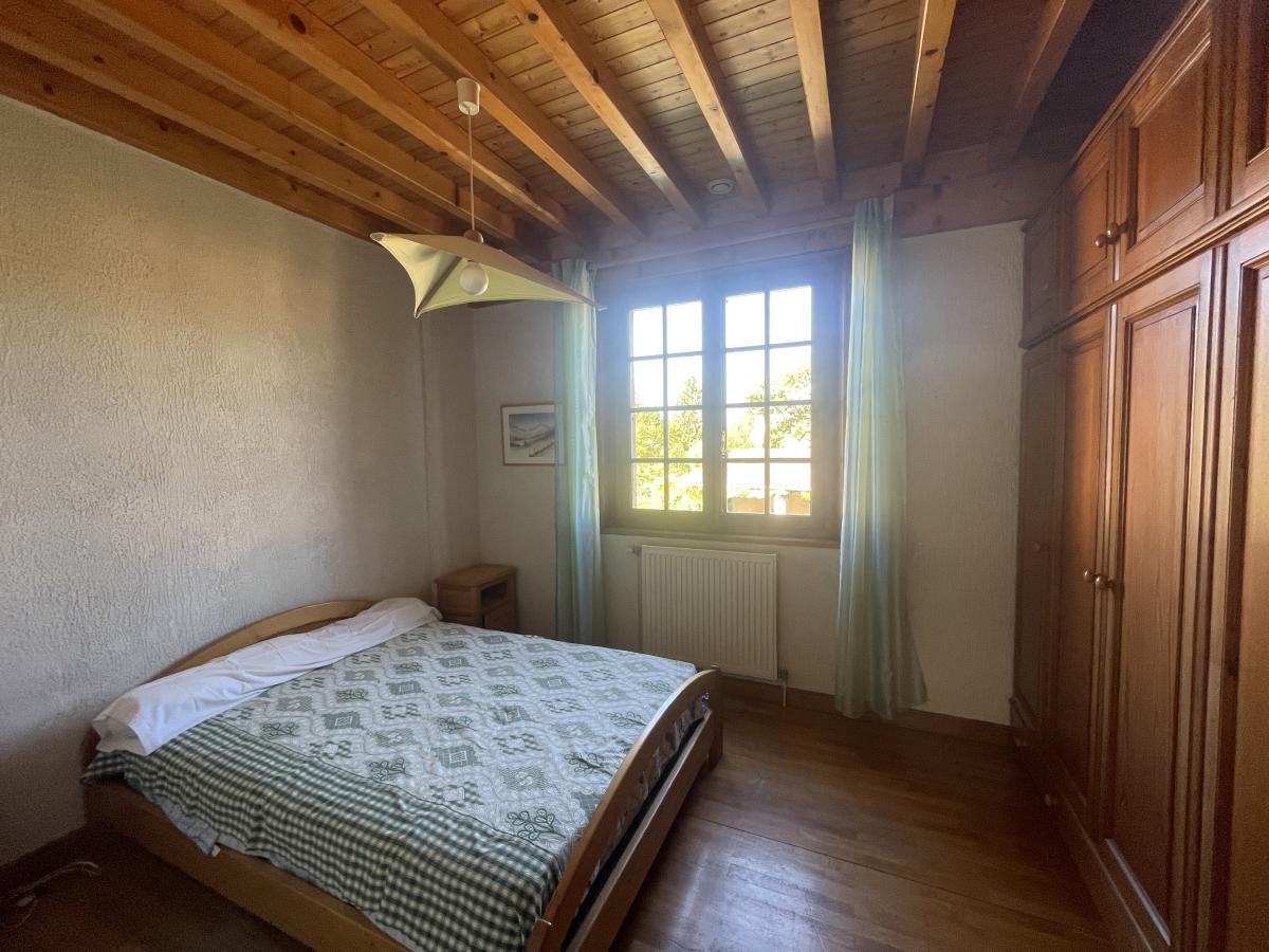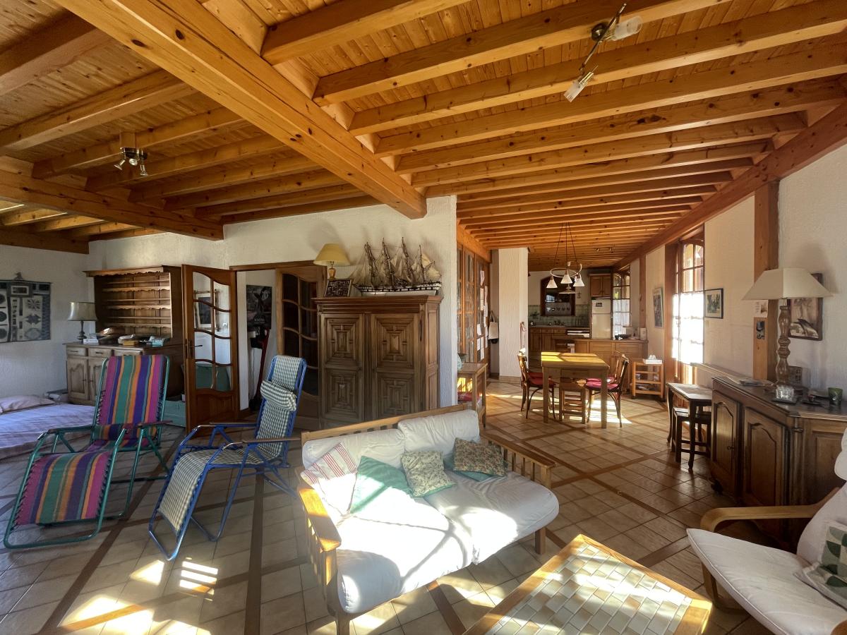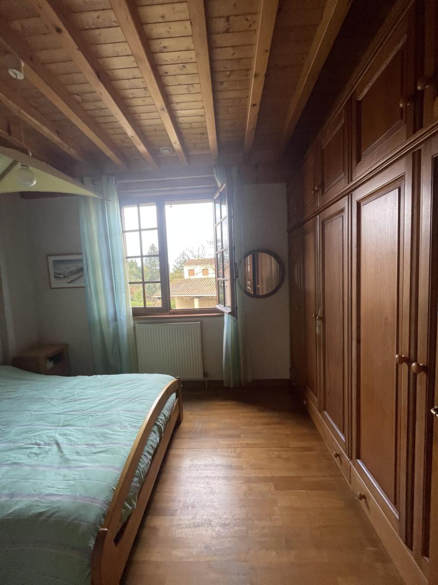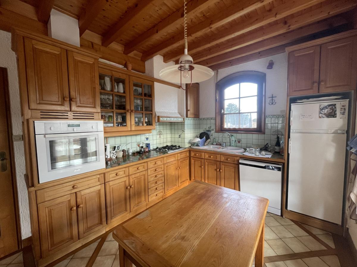 A l'étage : une cuisine équipée et aménagée donnant sur une terrasse couverte, un salon/séjour orienté Est Sud Ouest avec une cheminée insert, deux chambres avec placard mural, une salle d'eau et un toilette.