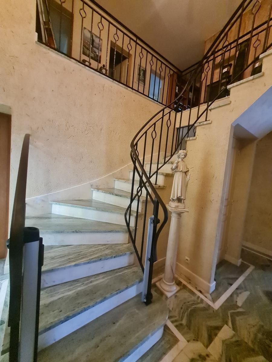 / au rdc: entrée, dégagement avec dressing, wc avec lave mains , bureau avec placard, couloir ,salon séjour avec cheminée avec grille de ventilation , cuisine aménagée et équipée ( évier 2 bas, éléments hauts et bas, 2 feux élec, 2 feux gaz, hotte, four), suite parentale: dressing, salle de bains ( meuble vasque, placards, baignoire, douche, bidet) , chambre. Double garage avec point d'eau.