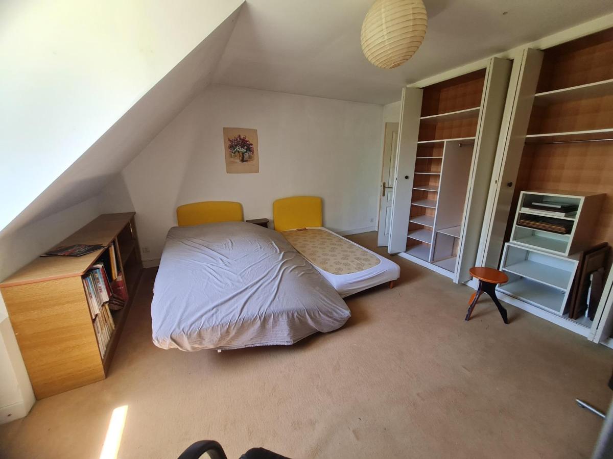 / au 1 er étage: mezzanine avec bibliothèque et insert, chambre avec placards, chambre avec placards avec salle de douche ( douche, meuble vasque) , chambre avec placard et salle de bains ( meuble vasque, baignoire), wc, atelier avec placard et point d'eau,