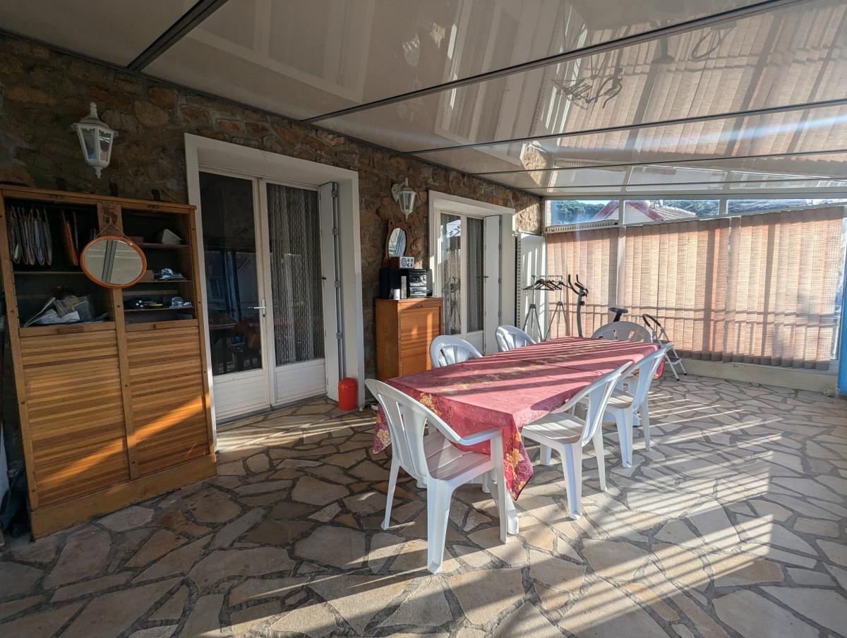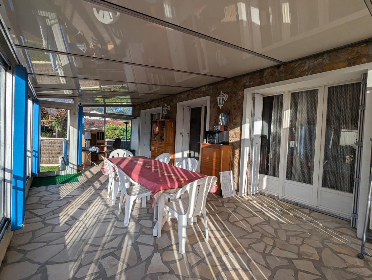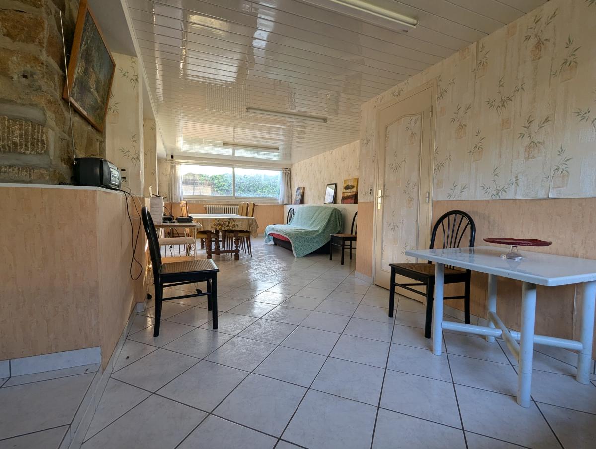 A l'étage : grande véranda chauffée, salon- séjour, cuisine, wc et une grande entrée desservant l'étage et le rez-de-jardin.