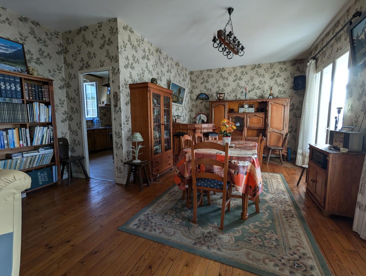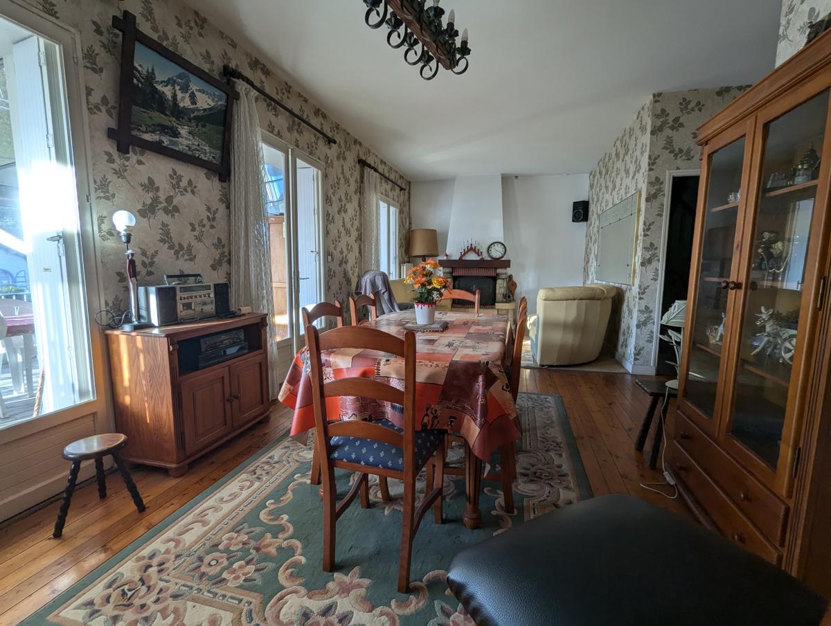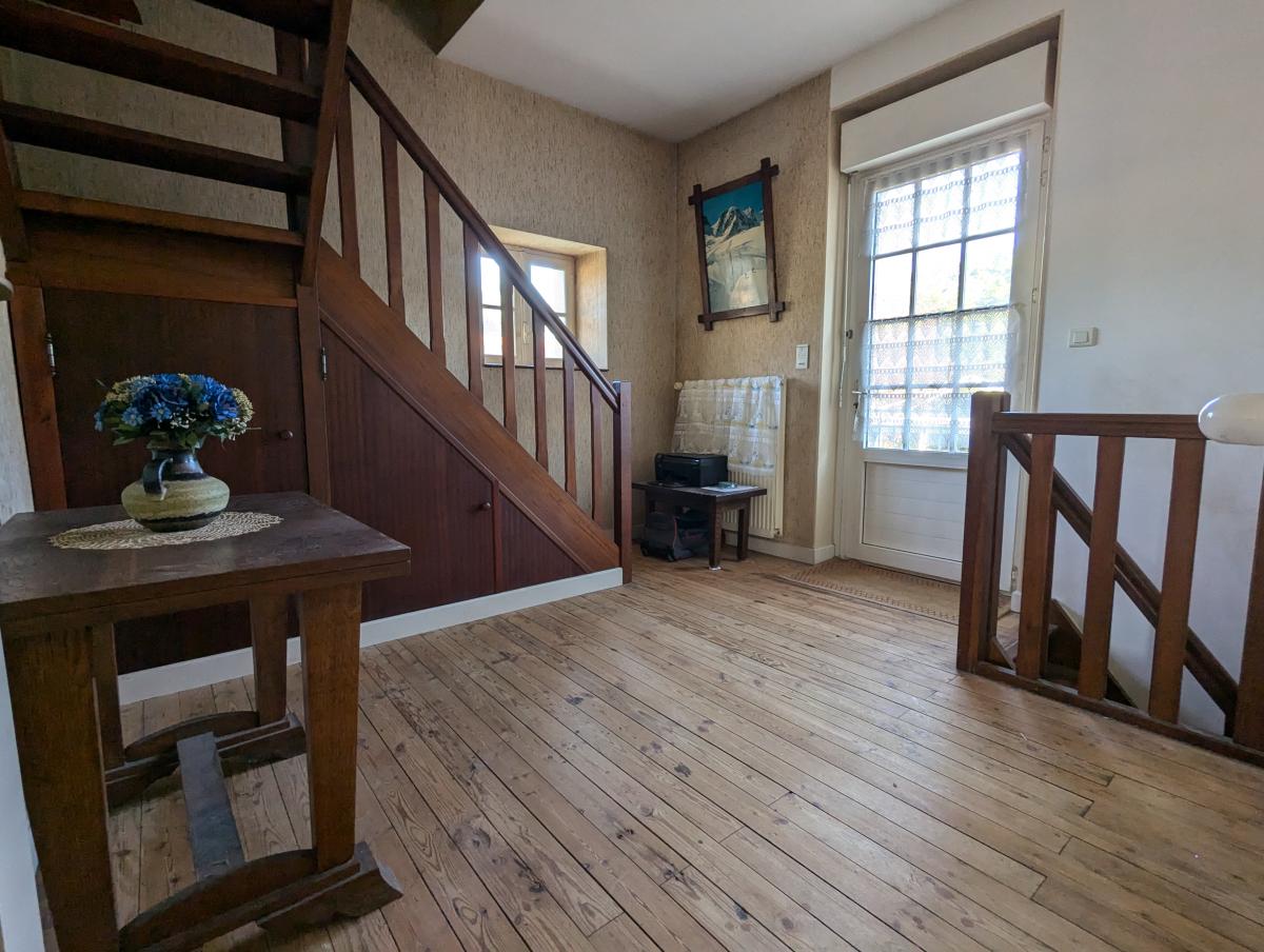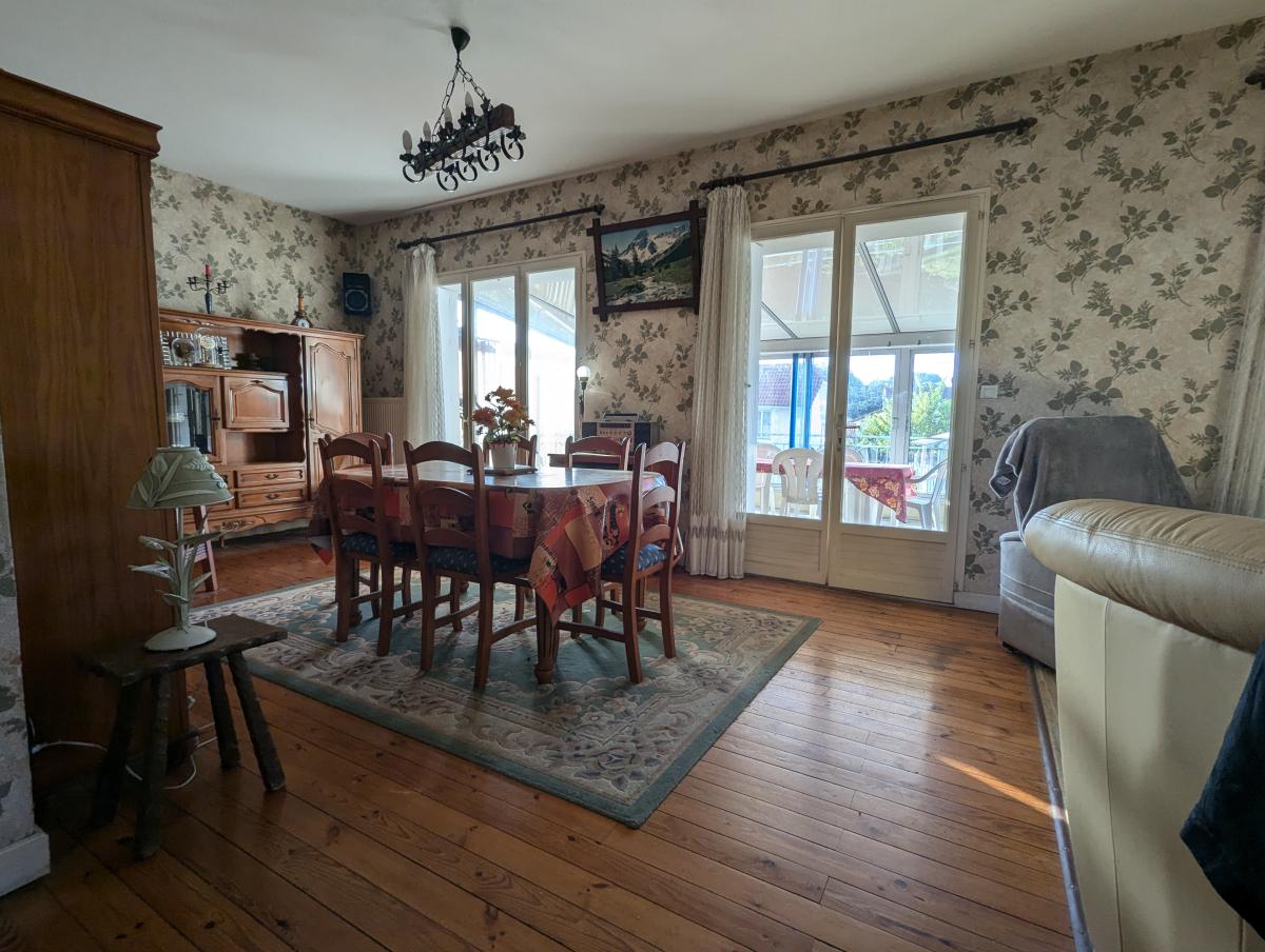 A l'étage : grande véranda chauffée, salon- séjour, cuisine, wc et une grande entrée desservant l'étage et le rez-de-jardin.