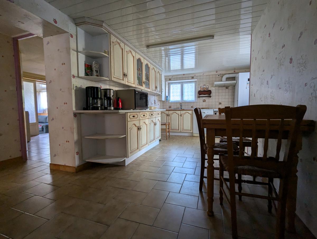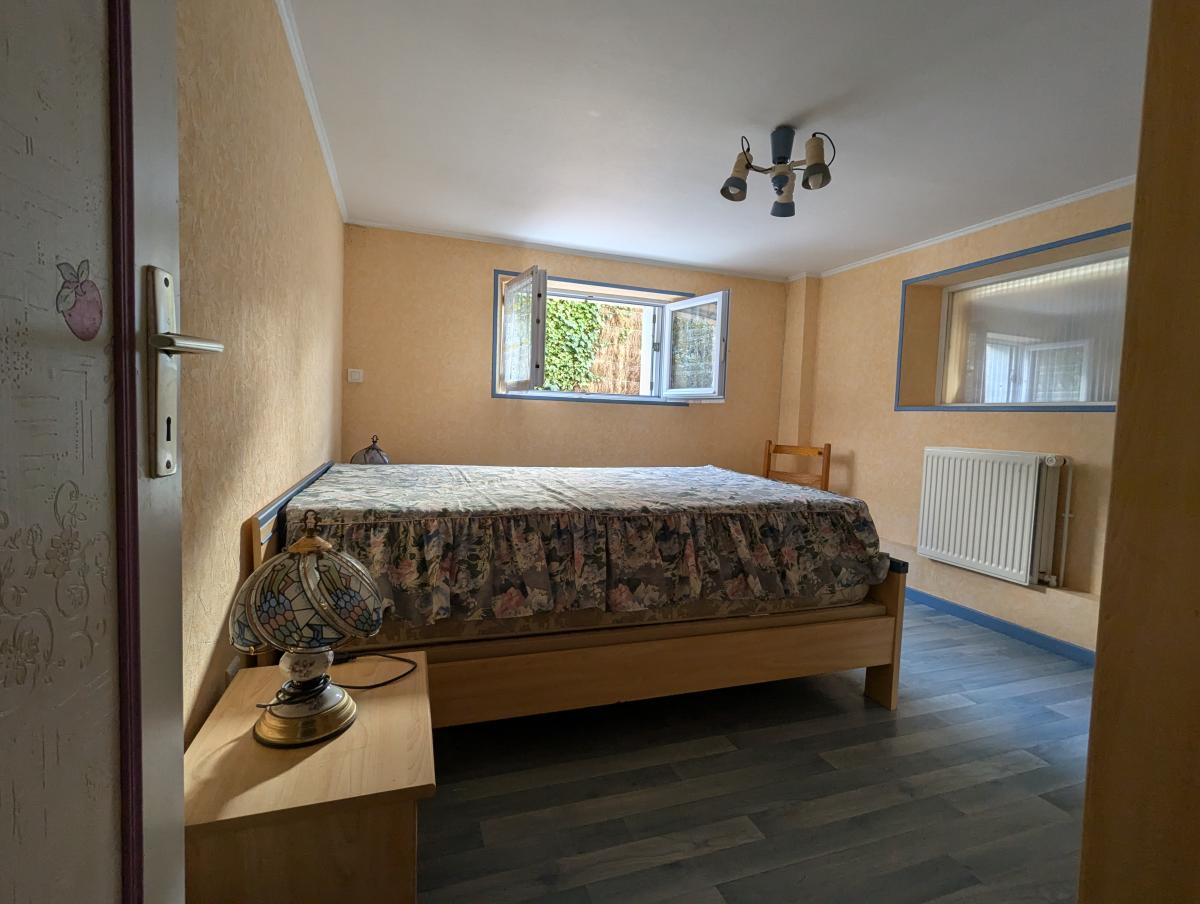 au sous-sol - rez-de-jardin : une cuisine, deux chambres, une buanderie, une pièce de vie, une cave, une salle de bains. Wc extérieur.