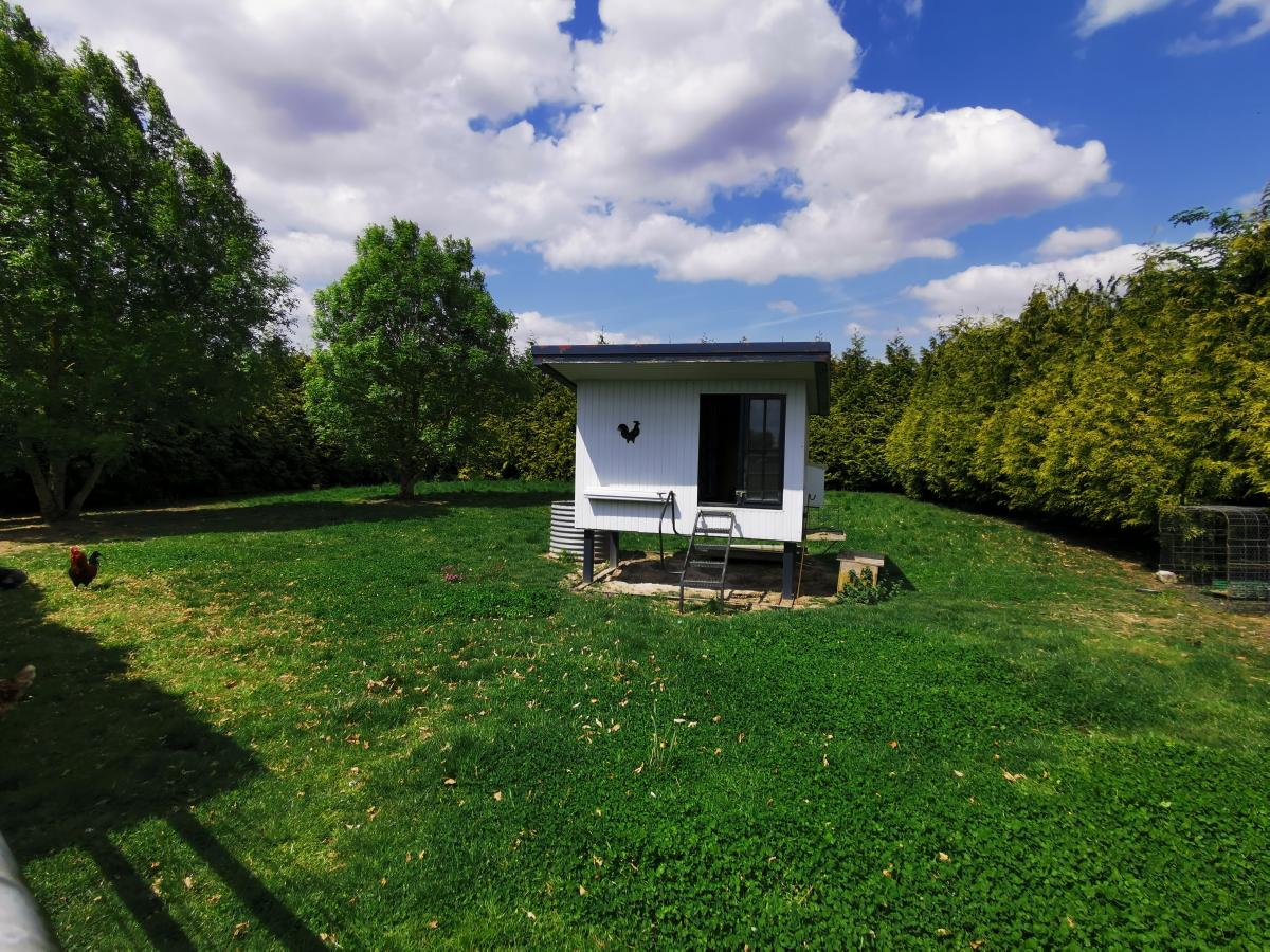 - d'un enclos à poules, avec poulailler sur pilotis, isolé ;