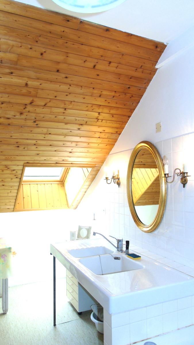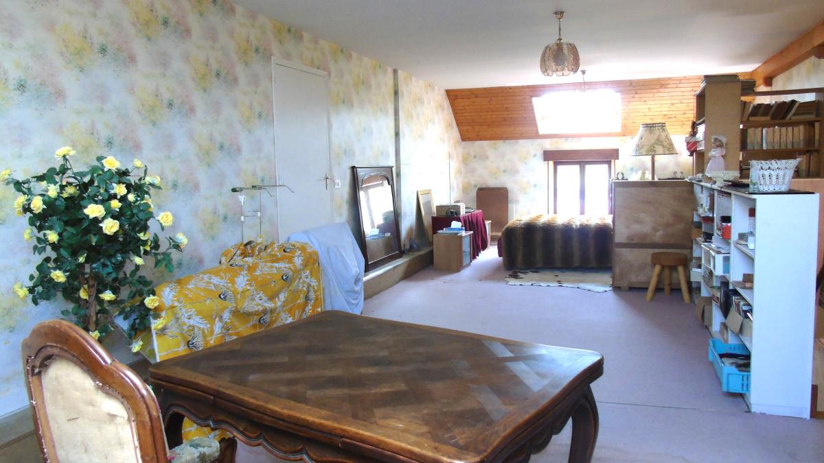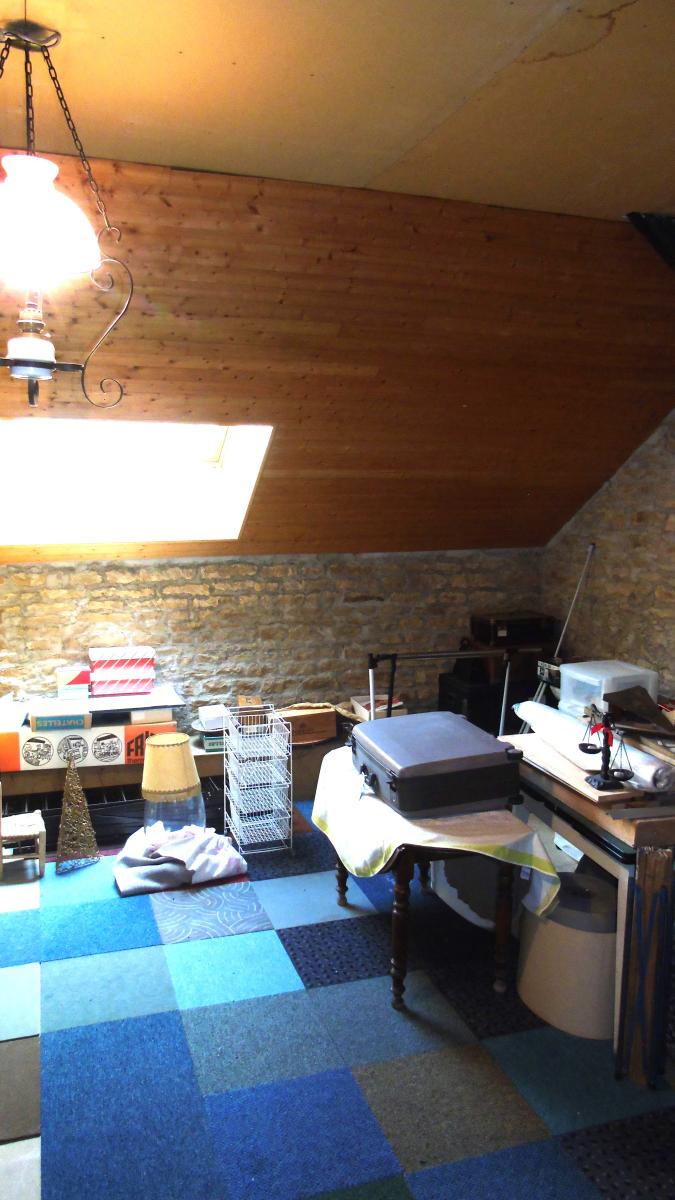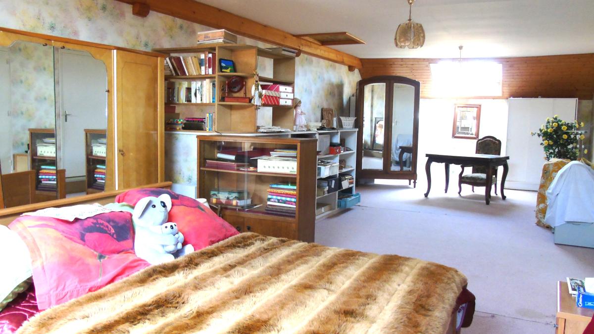 A l'étage deux chambres, une salle de bain ainsi d'une grande pièce de 53 m² à aménager selon vos besoins, combles aménageables ou l'on retrouve le charme de la pierre.