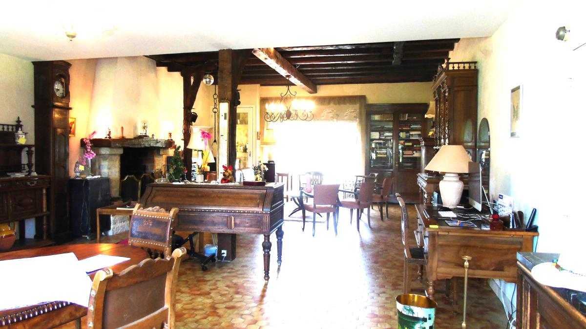 Cette maison propose un vaste séjour de 64m² avec cheminée et plafonds à la française.