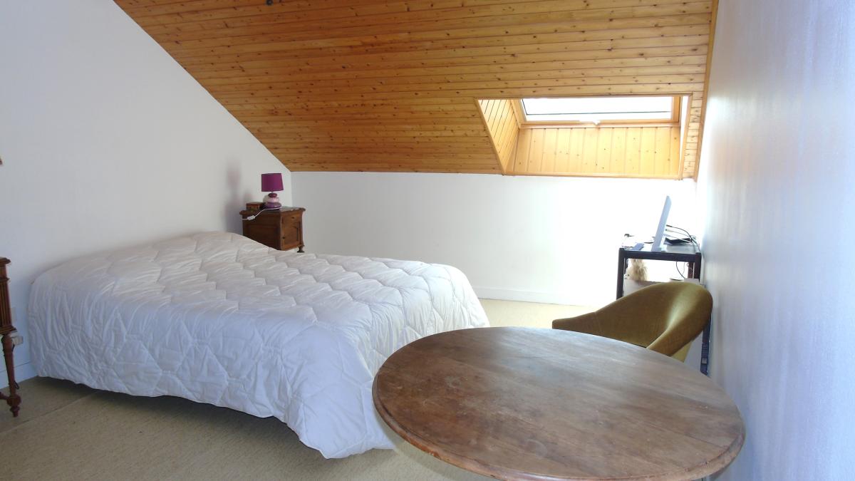 Une chambre avec dressing et salle de bain en rez-de-chaussée.