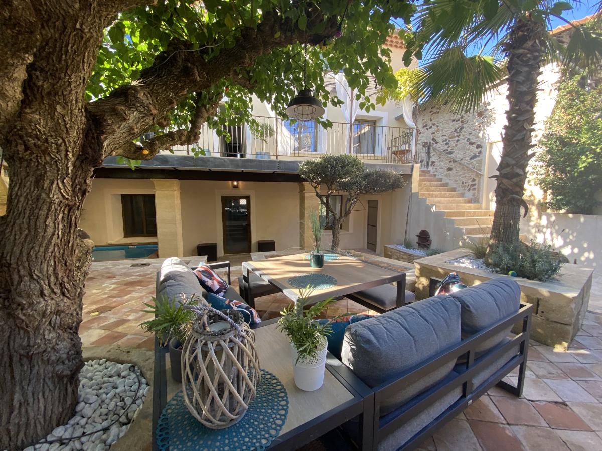 ENTRE UZES et AVIGNON - MAISON DE VILLAGE RENOVEE avec jardinet cour et bassin
