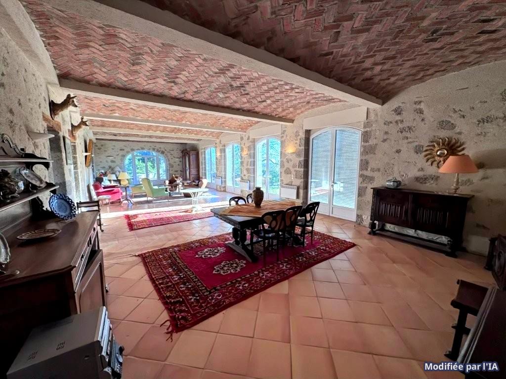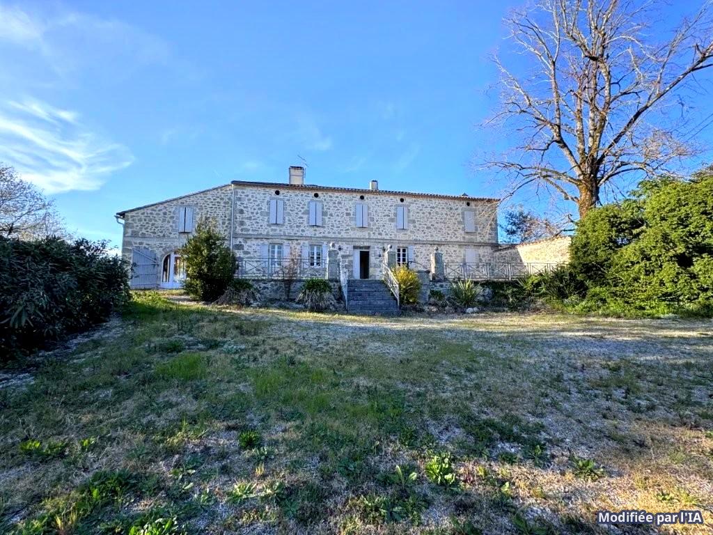 En campagne de la ville Nérac (Lot-et-Garonne 47), sur l'axe en direction de l'agglomération de AGEN, et à peu de kilomètres du centre ville, belle propriété sur un terrain d'environ 1.50 ha, comprenant une demeure en pierres offrant une surface exploitable d'environ 290 m², avec son entrée, son grand séjour de 95 m² au plafond vouté, son salon de 31 m², sa cuisine de 22 m², ses trois chambres, ses deux salles d'eau et toutes autres pièces utiles. Grand parc autour avec terrasses et nombreuses dépendances attenantes et non attenantes dont une maison de gardien à rénover.