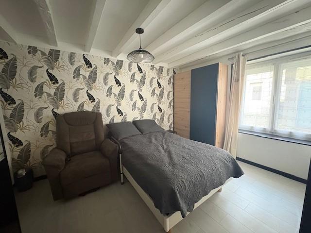 A l'étage : 2 chambres, salle de douche, WC et bureau.
