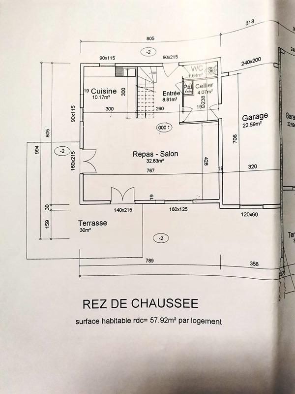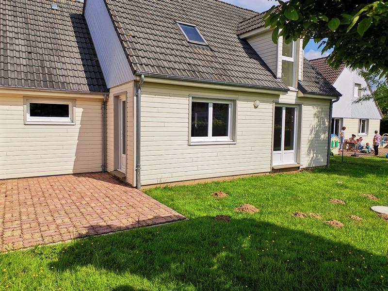 Maison contemporaine construite en 2009, avec locataire en place, comprenant au rez-de-chaussée entrée, séjour, cuisine, cellier, wc, à l'étage palier, 3, chambres, salle de bains, wc, garage attenant, terrain environ 300m², chauffage pompe à chaleur, double vitrage, prix 147 800€ HN à la charge du vendeur