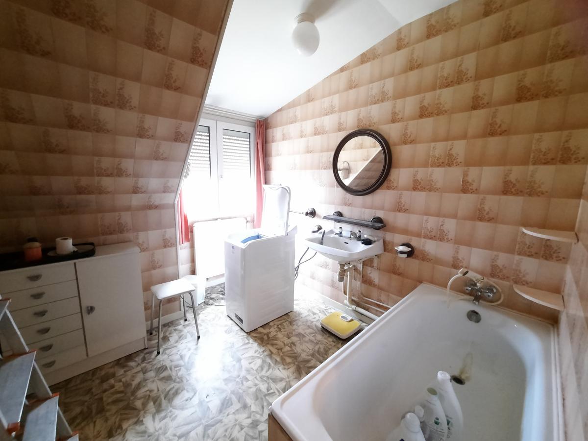 Hall d'entrée, grand séjour, cuisine, WC, étage : 3 chambres dont une avec lavabo