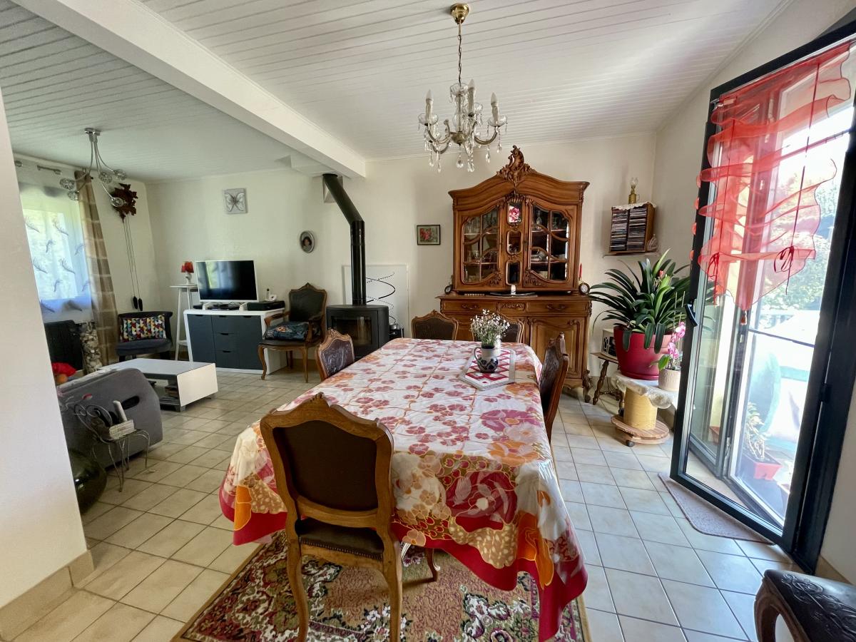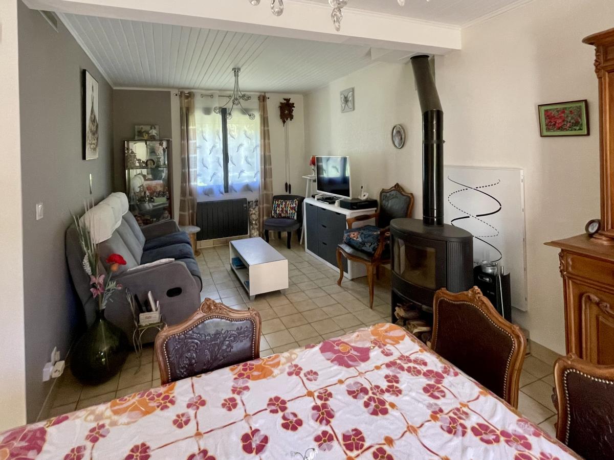 Maison comprenant au rez de chaussée: une entrée, un salon-séjour avec poêle à bois, une cuisine aménagée et équipée, une chambre et un WC