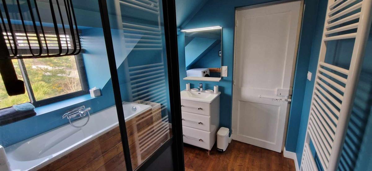 Au rez-de-chaussée : entrée, cuisine aménagée et équipée, salle à manger, salon avec coin bureau et placards, une verrière.