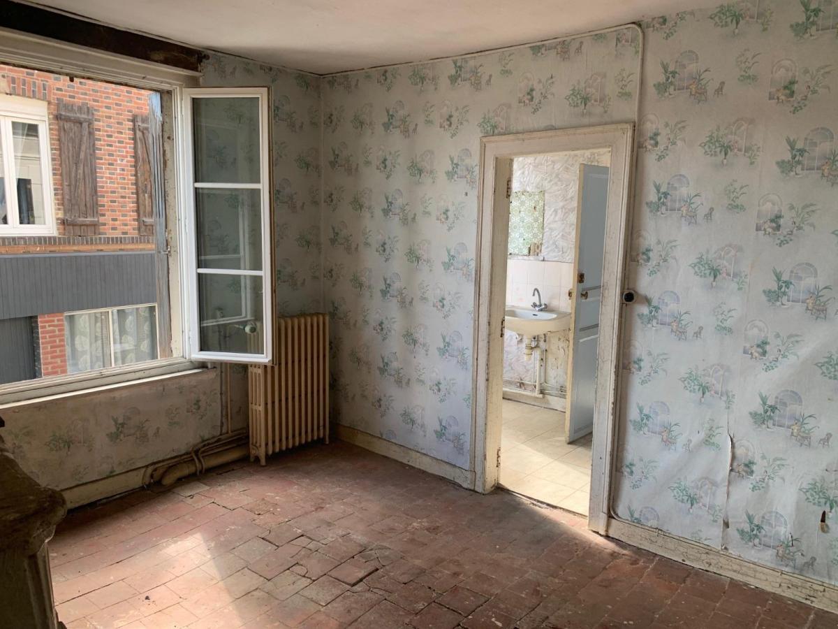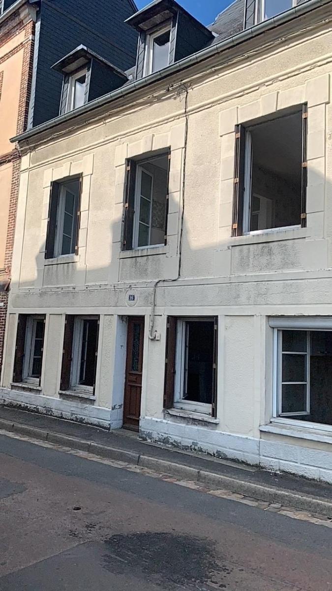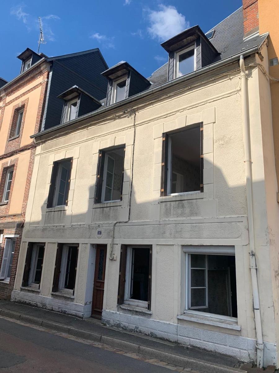 Orbec centre, maison de ville à rénover disposant de beaux volumes, sans jardin ni garage, comprenant :