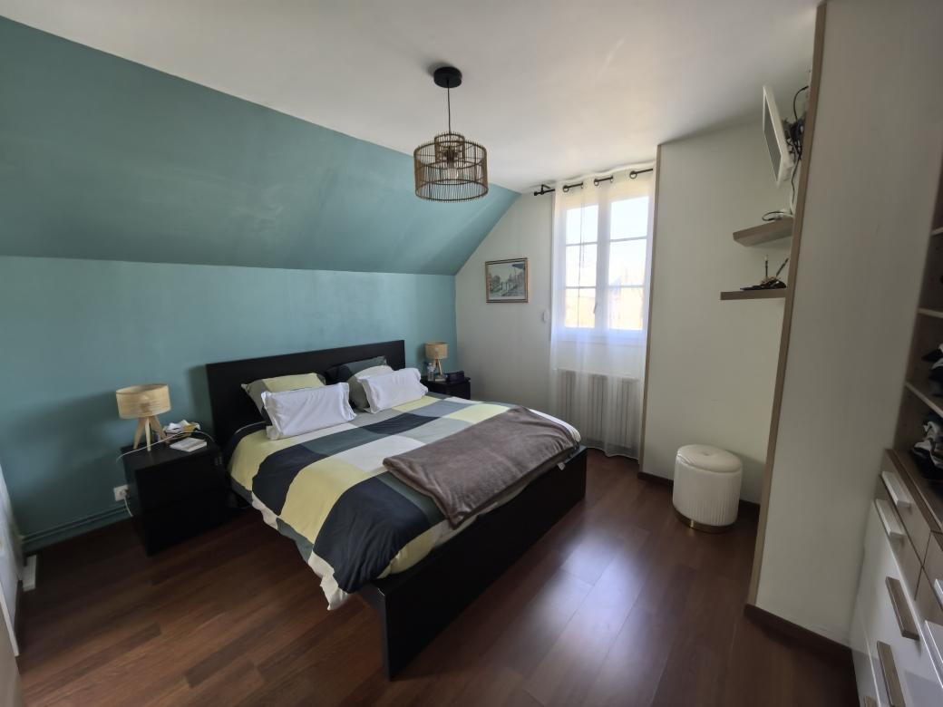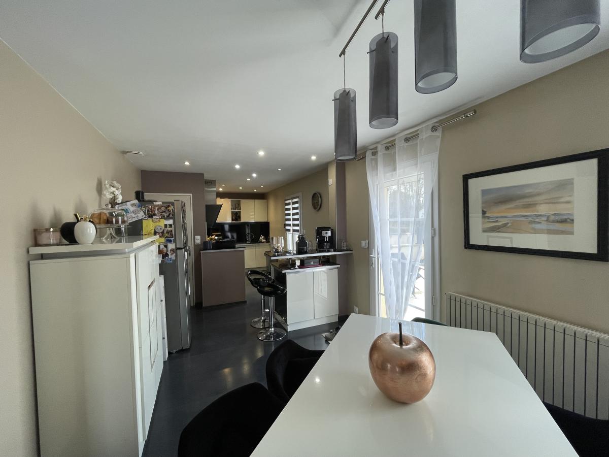 Pavillon de 107 m² au sol, édifié en 1992 sur sous-sol total comprenant une entrée avec dressing, salon, salle à manger, cuisine ouverte équipée, wc, garage avec porte automatique. A l'étage, surface palière, quatre chambres dont une parentale avec salle de bains, salle d'eau, wc indépendant, combles au dessus. Grande terrasse.
