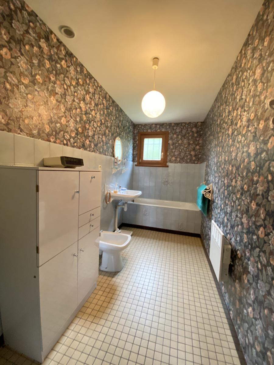 Entrée, séjour, cuisine, salle de bain avec baignoire et douche, WC indépendant, 3 chambres et 1 bureau.