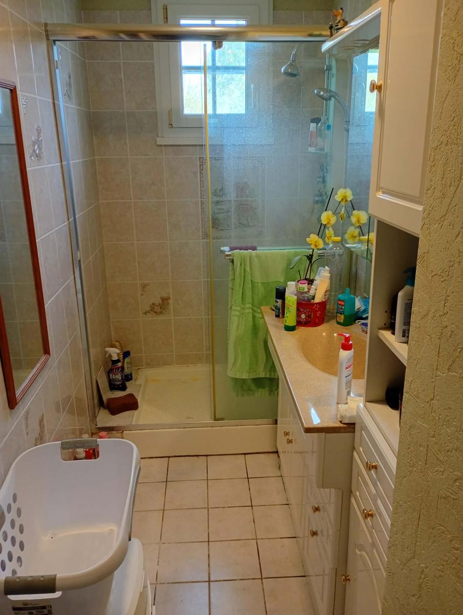- au rez-de-chaussée: entrée et dégagement (11,70m²), salon-séjour (27,11m²), cuisine ouvrable sur le séjour (11,11m²), trois chambres (9,89 / 12,48 / 13,6m²), salle d'eau (4,34m²), WC (1,09m²);