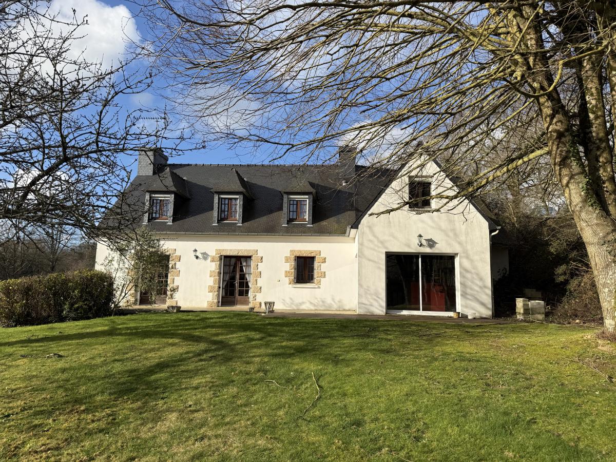 Sur plus de 4000 m2 de terrain, en campagne et à moins de dix minutes du centre-ville de Guingamp et cinq minutes des grands axes, maison en parpaings sous ardoises comprenant :