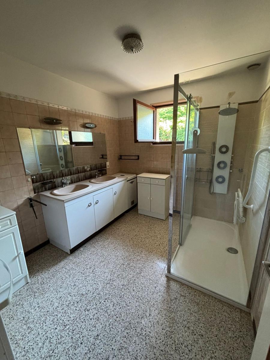 Une terrasse pour profiter des extérieurs avec barbecue en pierre, deux garages complète se bien.