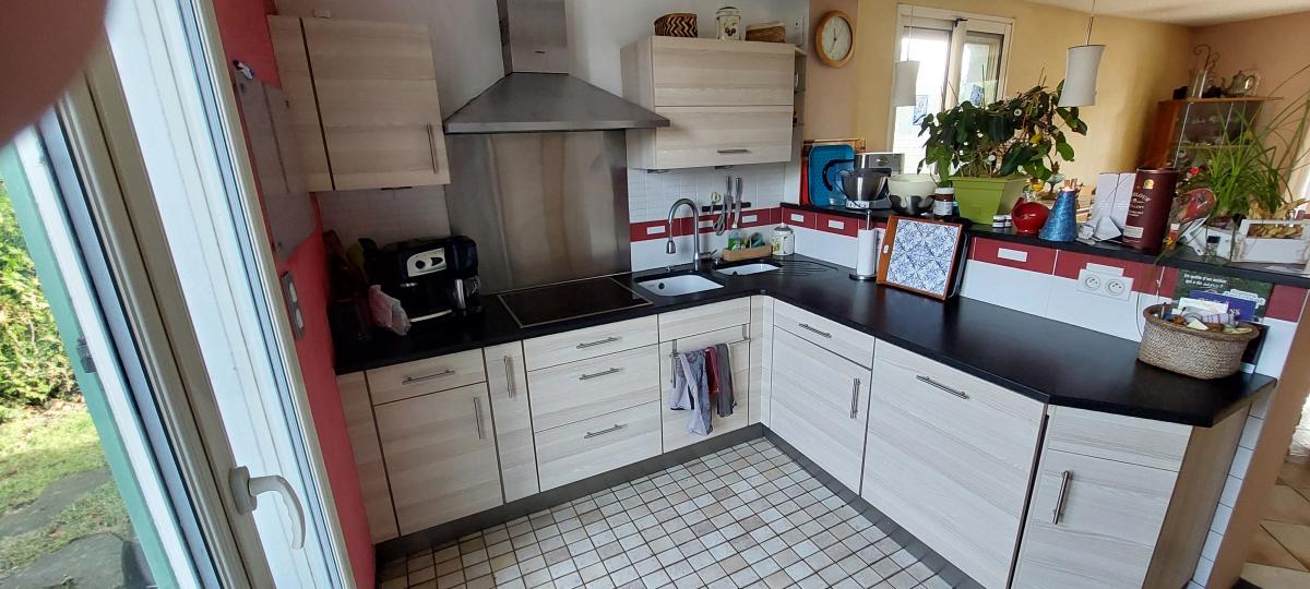 - Rez de Chaussée : Entrée, WC, cuisine équipée ouverte sur pièce de vie, lingerie.