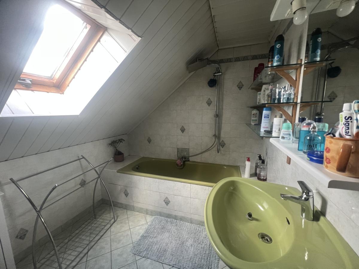 - Au rez-de-chaussée: un salon / séjour avec une cheminée insert, une cuisine aménagée, un dégagement desservant deux chambres, un WC et une buanderie.