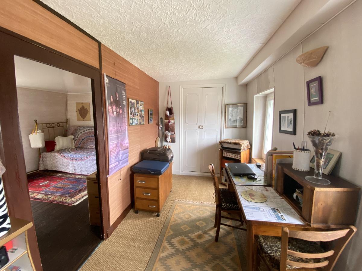 Au deuxième : palier, deux chambres et une pièce avec placard.