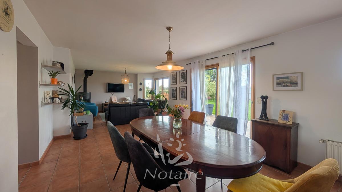 La maison bénéficie de bonnes performances énergétiques grâce à son chauffage par pompe à chaleur, son isolation renforcée et un poêle à bois pour le confort et l’ambiance.
