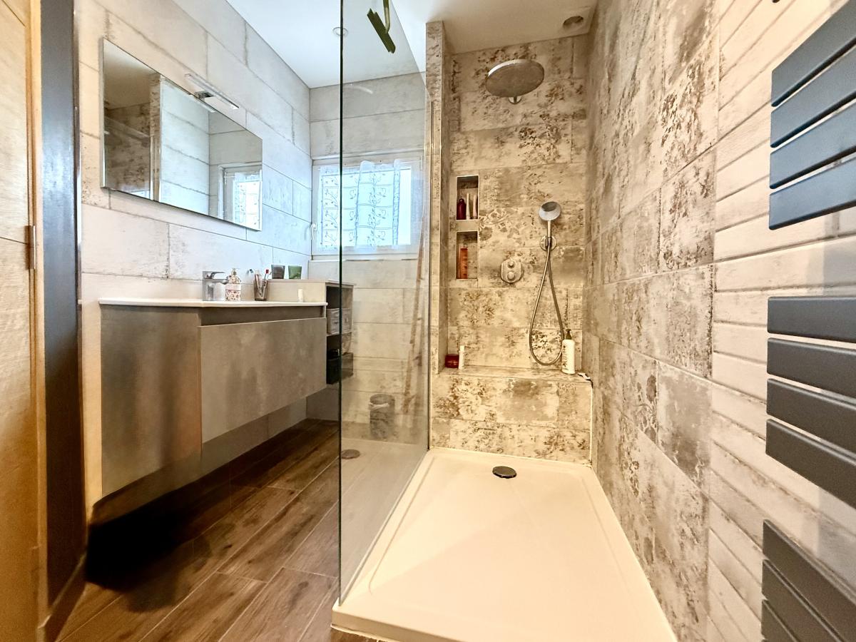 Le plus pour ce bien atypique qui se trouve dans un quartier calme très recherché et non loin du Ter, un jardinet avec terrasse sans vis à vis, deux places de parking privatives devant la maison, un poêle à pellet dans la salle à manger en complément du chauffage électrique.