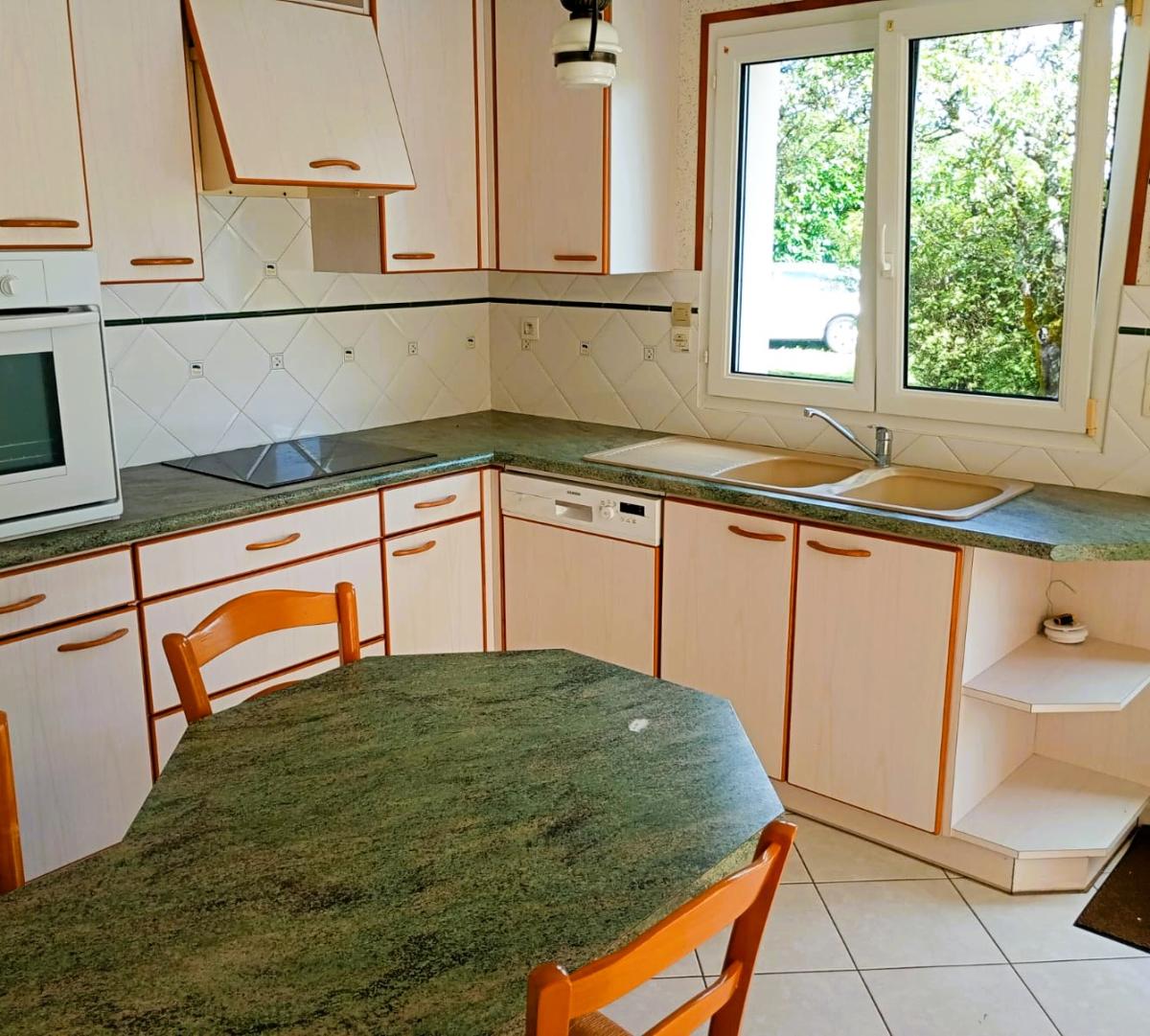 Maison des années 90, située dans le quartier bourg "Chemin du Doucet", d'une surface de 129 m², comprenant : une entrée, salon séjour (avec cheminée) ouvert sur cuisine équipée aménagée. Grande arrière cuisine, toilettes, salle de bains avec douche, un chambre avec rangement, véranda chauffée, buanderie (19 m² environ). A l'étage, palier, chambre avec placard, bureau avec placard, salle d'eau et toilettes. Grenier (potentiel de 36 m² environ). Le tout sur une parcelle de 686 m². Chauffage au gaz par le sol au rez de chaussée et électrique pour l'étage- Ardoise naturelle en bon état général. Les informations sur les risques auxquels ce bien est exposé sont disponibles sur le site Géorisques : www.georisques.gouv.fr