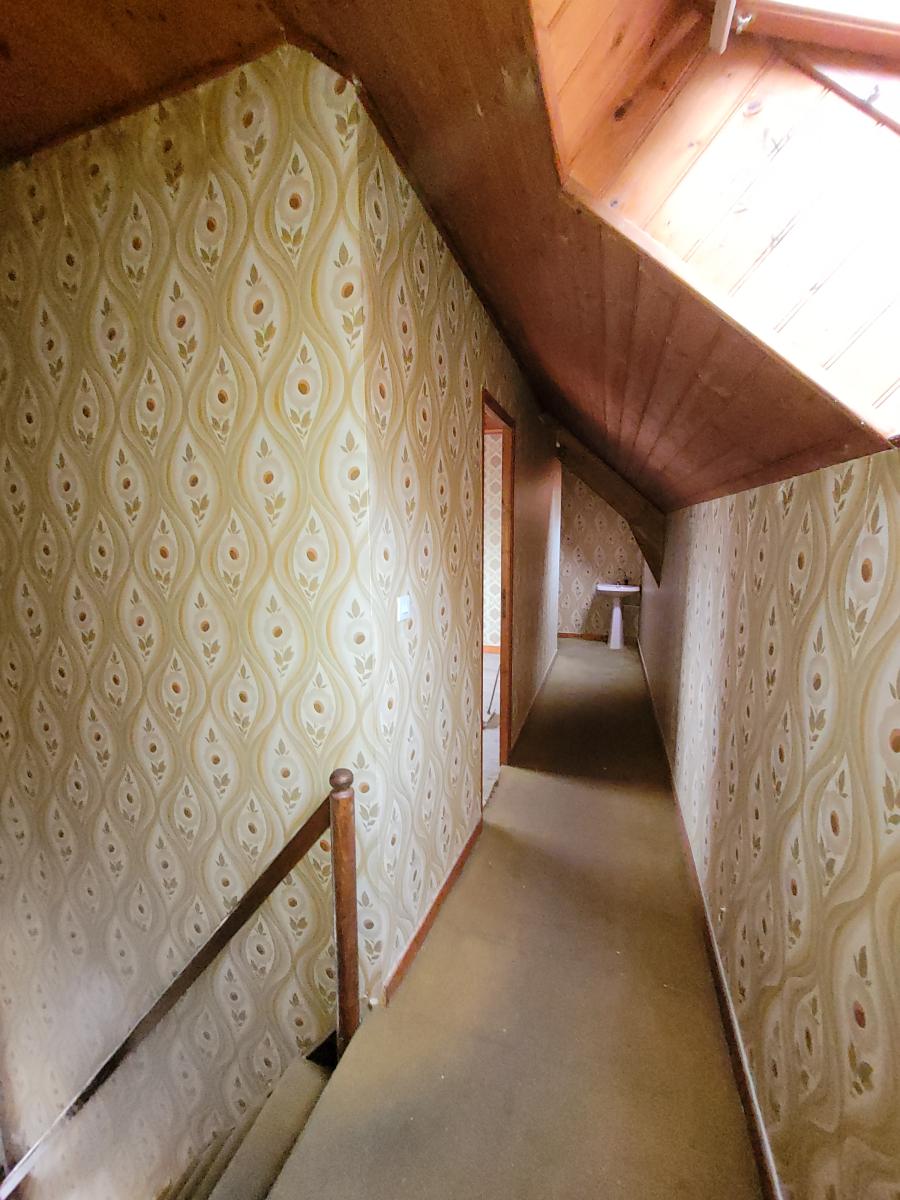 A l'étage, un couloir desservant trois chambres.