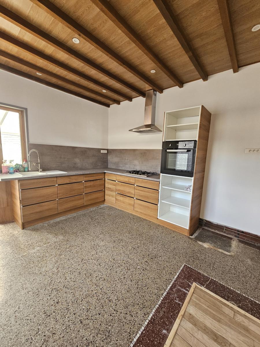 Maison - élevée sur cave d'un rez de chaussée comprenant une salle à manger, un salon, une cuisine équipée, WC.