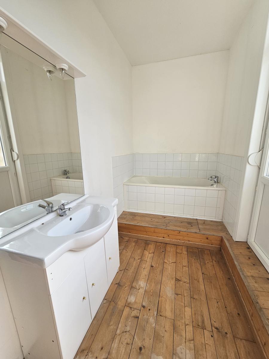 Au deuxième étage : un couloir desservant deux chambres et une salle de bains