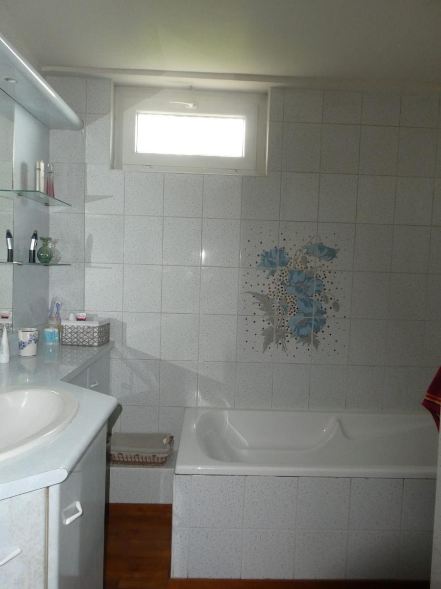 Au premier étage un palier desservant trois chambres  dont deux en enfilade avec possibilité de faire un accès indépendant , une salle de bains ( Baignoire et douche) , wc indépendant et grenier aménageable .