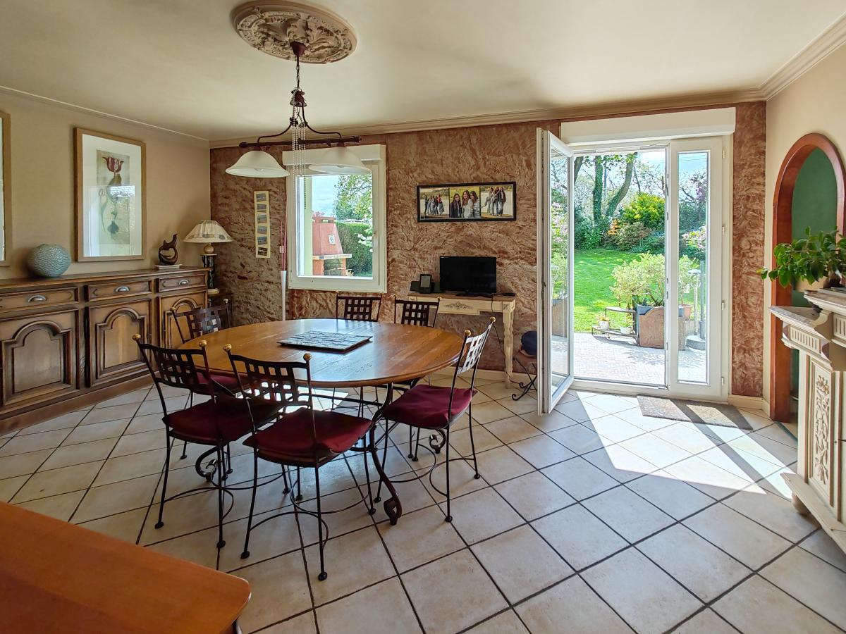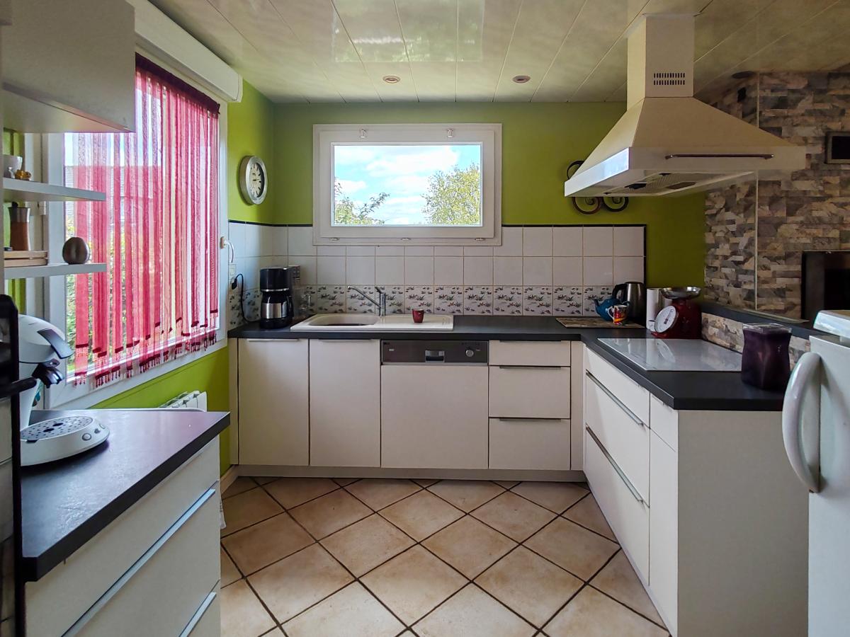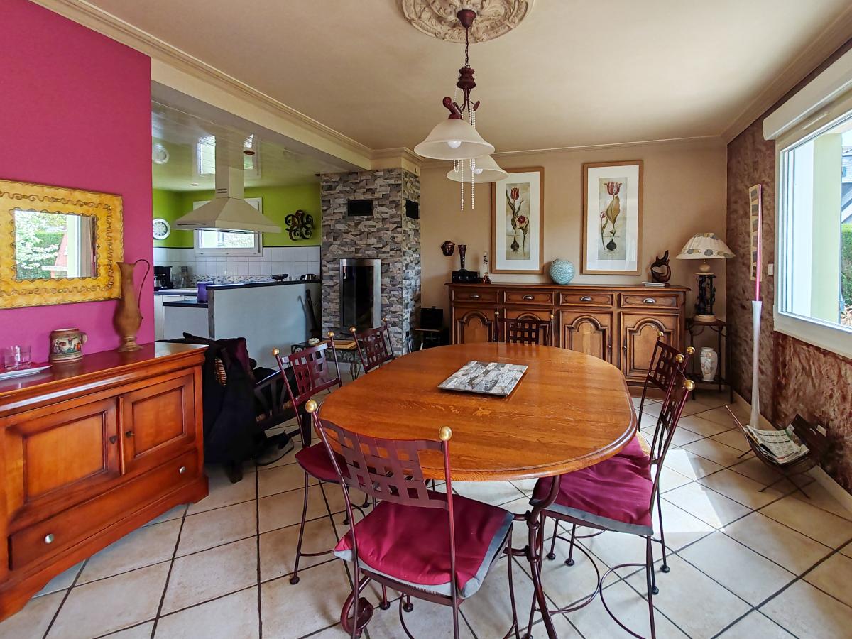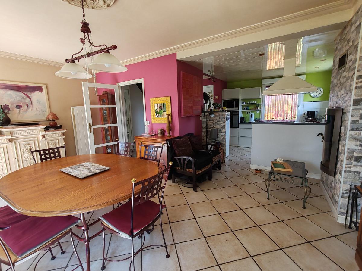 Au rez-de-chaussée, un hall d'entrée, une cuisine aménagée et équipée ouverte sur la salle à manger disposant d'une cheminée insert, un salon, une chambre, une salle d'eau et un wc.