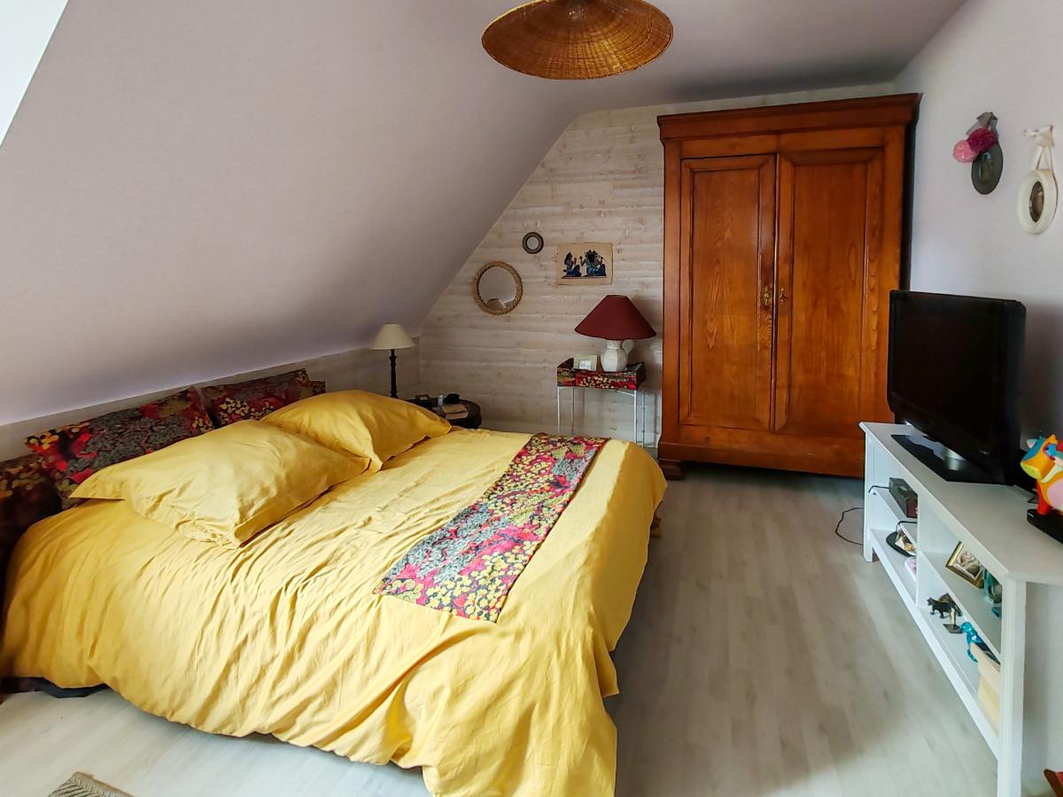 A l'étage, un couloir dessert trois chambres, une vaste pièce à usage de salle de jeux, et une salle de bains avec wc.