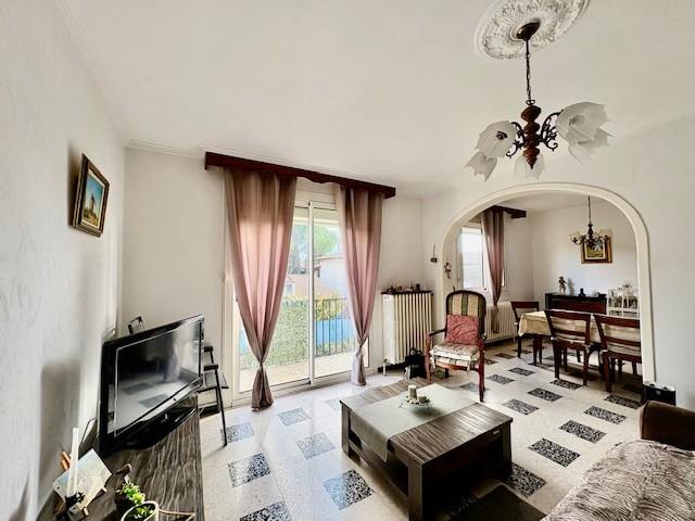 Sur une parcelle de terrain de 725 m² située dans un quartier calme et proche du centre du village, villa T7 mitoyenne d'un côté comprenant en rez-de-chaussée un appartement de type T2 (43 m² environ; hauteur 2m environ) ainsi que trois garages (d'une surface totale de 70 m² environ) ; à l'étage, le logement principal (91 m² environ) se compose d'une entrée, d'un séjour (salle à manger et salon), une cuisine, quatre chambres, une salle de bains et un WC. La maison, construite dans les années 70, est à rénover.
