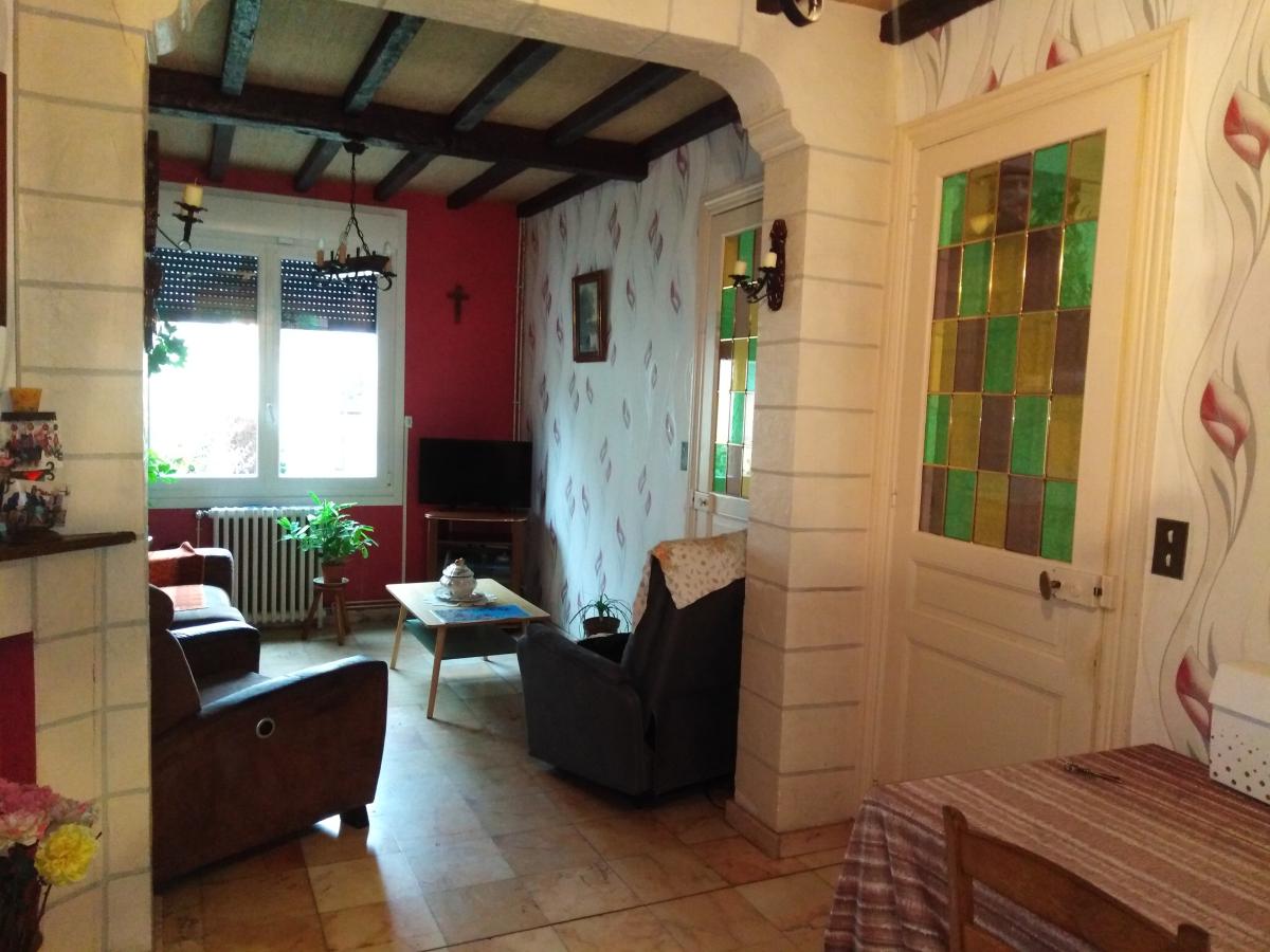 - Rdc : Chambre, salle de bains, wc, cuisine aménagée et équipée, arrière cuisine, salon-séjour ;