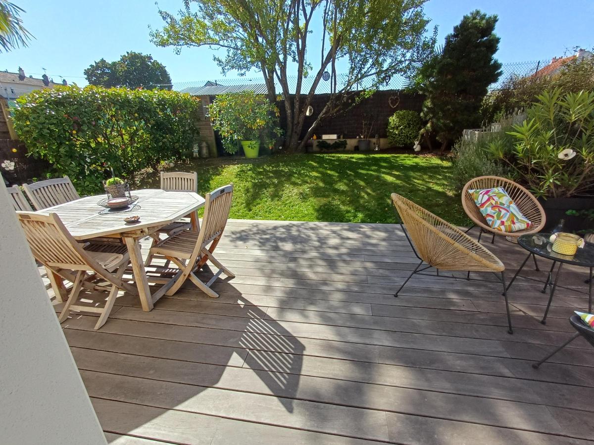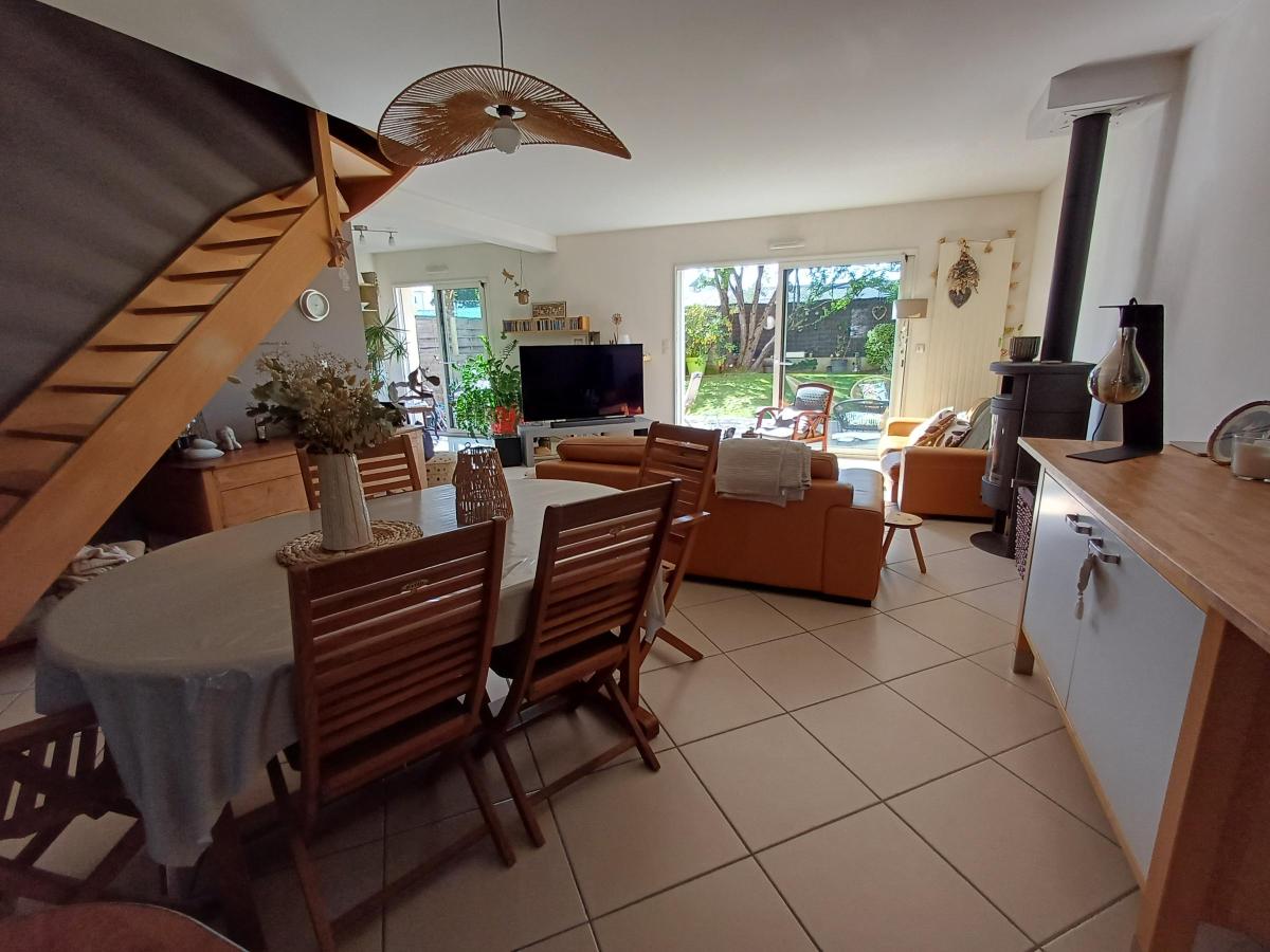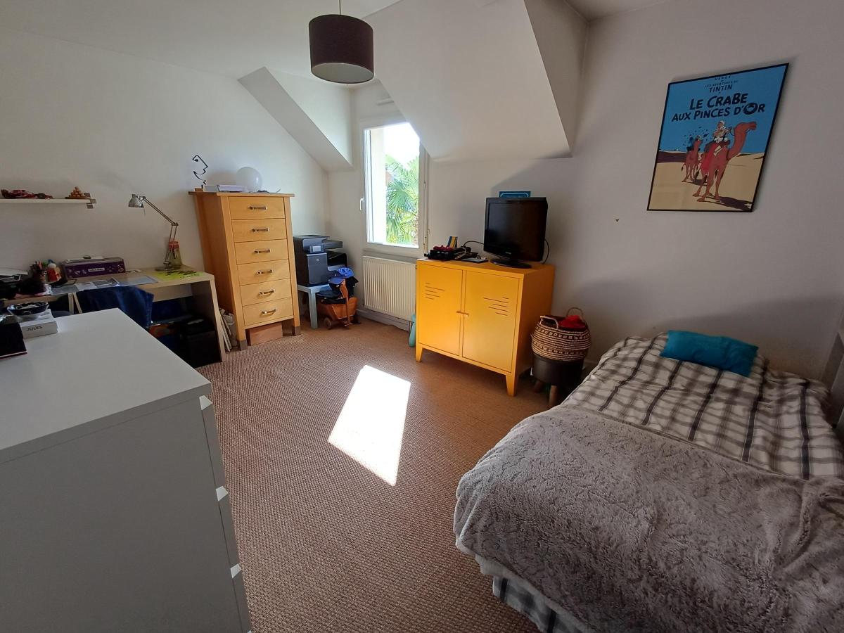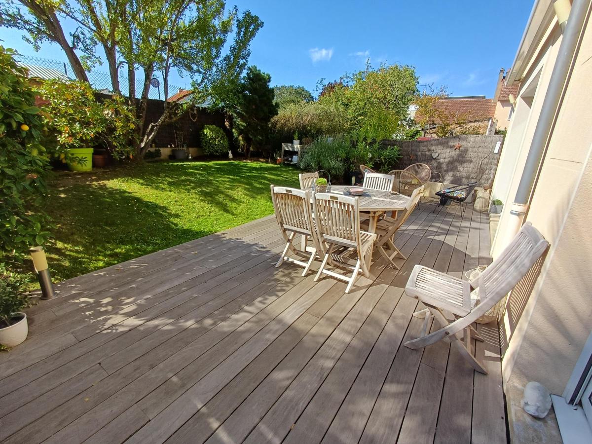 OASIS - RARE - Dans une ruelle très au calme - Agréable pavillon de 2003 en excellent état d'une superficie de 135 m² se composant d'une entrée avec placard, un salon/séjour avec un poêle donnant sur la terrasse SUD, une cuisine aménagée et équipée ouverte, un salon (possibilité chambre de plain-pied), WC, une buanderie. A l'étage, un palier, quatre grandes chambres, une salle de bains avec baignoire et douche, WC séparé. Combles aménageables avec une possibilité de deux chambres en plus (photo projet).Un garage, le tout sur un terrain cadastré de 249 m² clos et joliment arboré.
