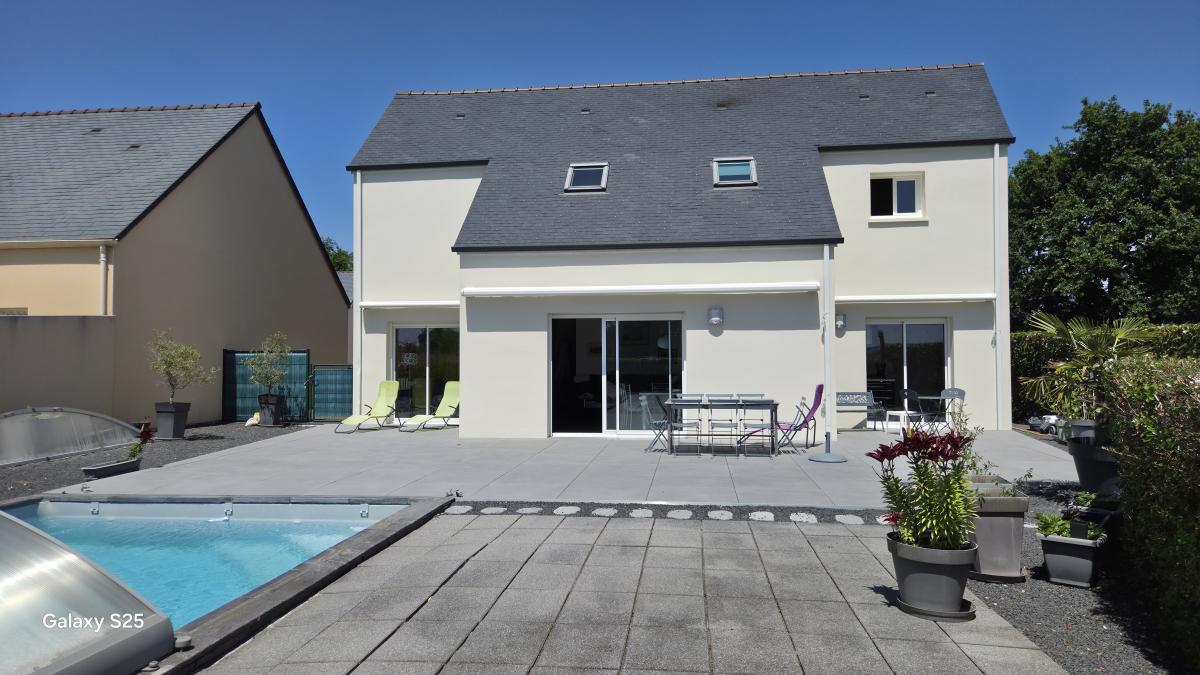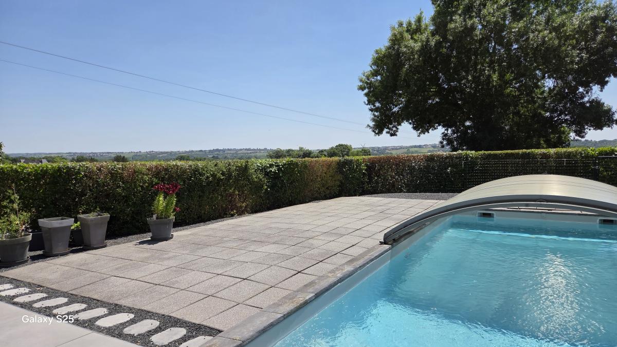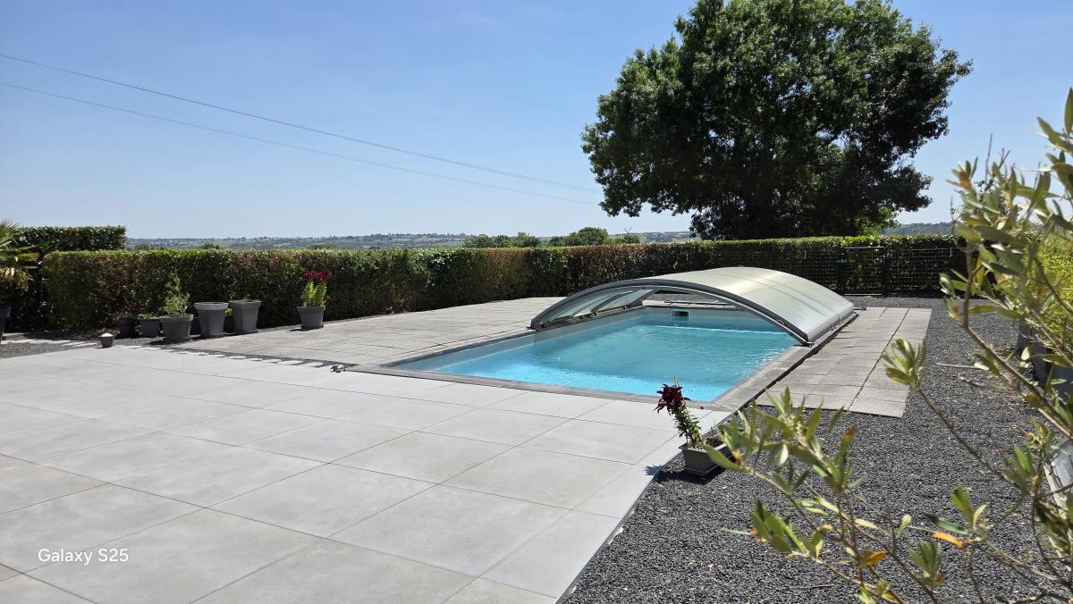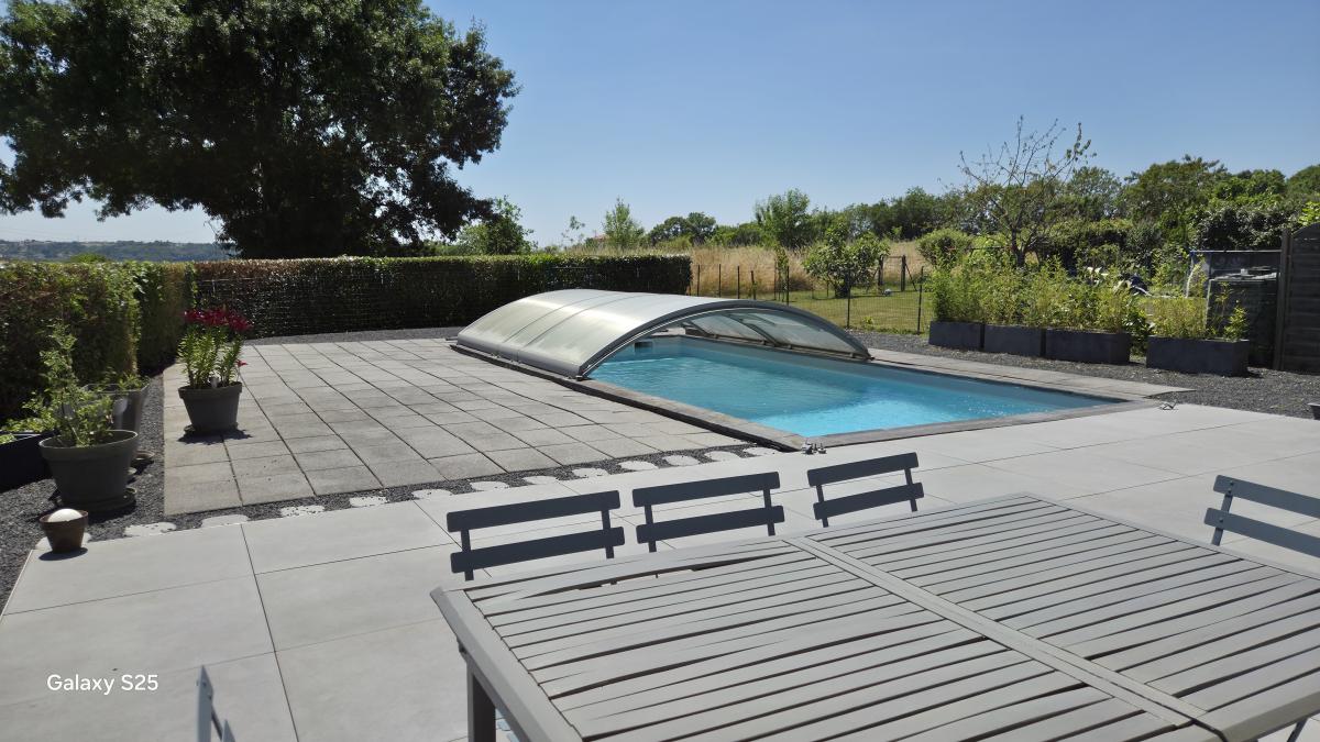 Piscine avec dôme coulissant chauffée (pompe à chaleur) pour en profiter une grande partie de l’année.