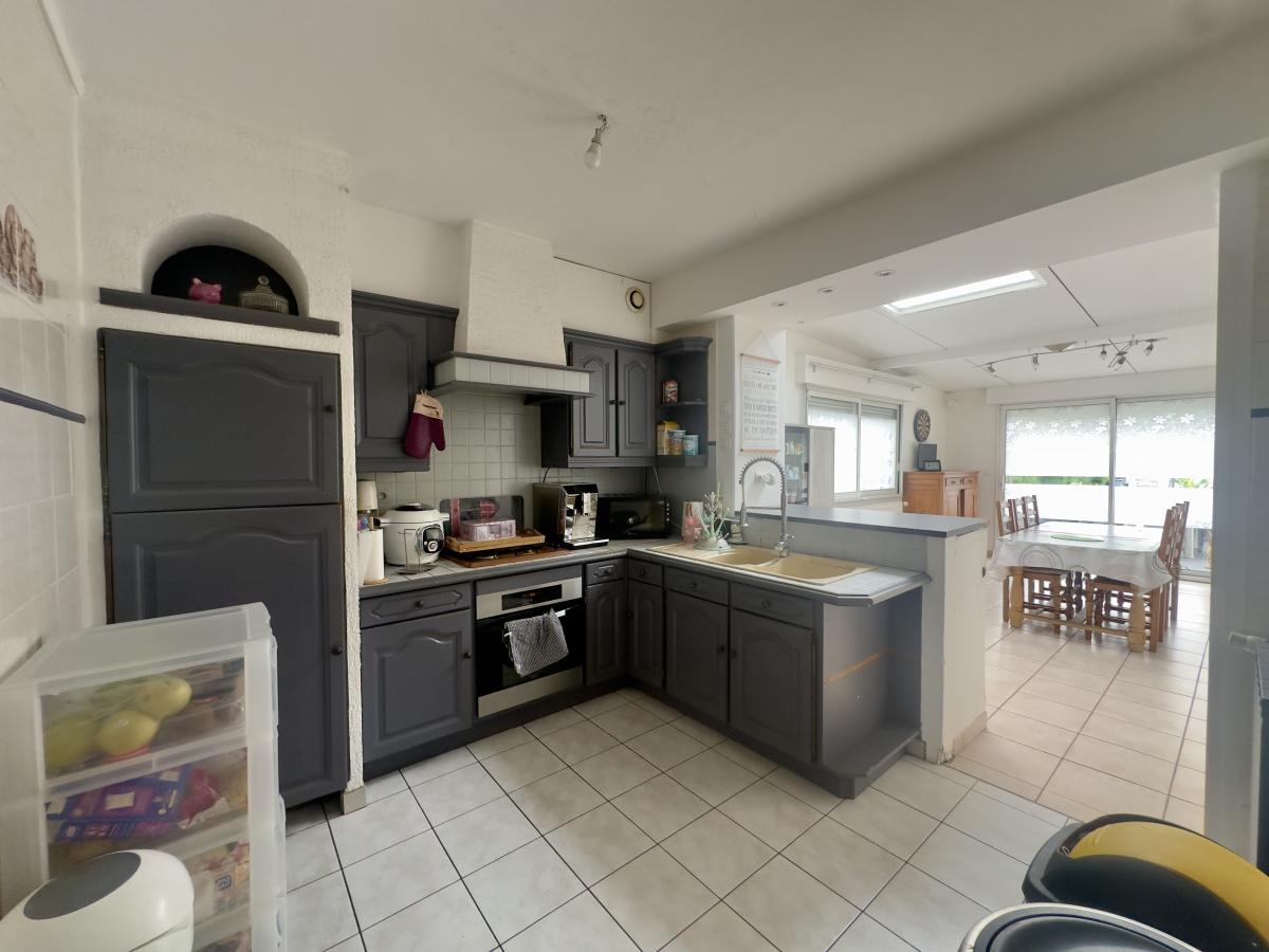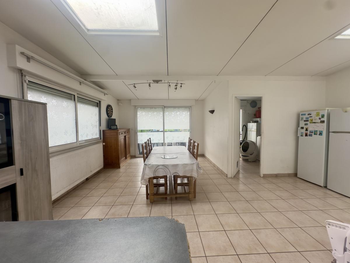 Hall d'entrée avec vestiaire, salon séjour, cuisine, wc, salle de bains, véranda, buanderie,