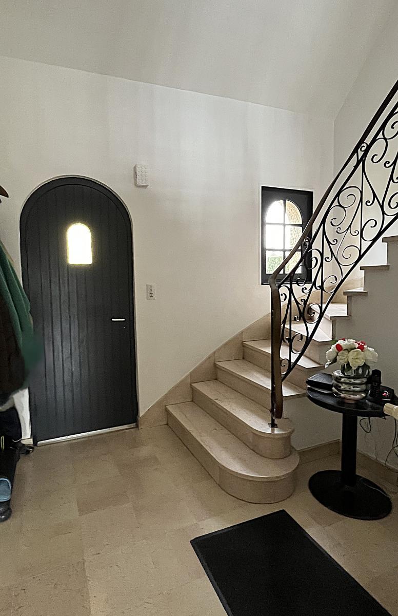 - Rez-de-chaussée surélevé : hall d'entrée donnant sur le salon-salle à manger avec une cheminée d'ornement, cuisine aménagée et équipée, chambre (balcon communiquant avec ces trois pièces), salle de bain avec baignoire et douche, WC.