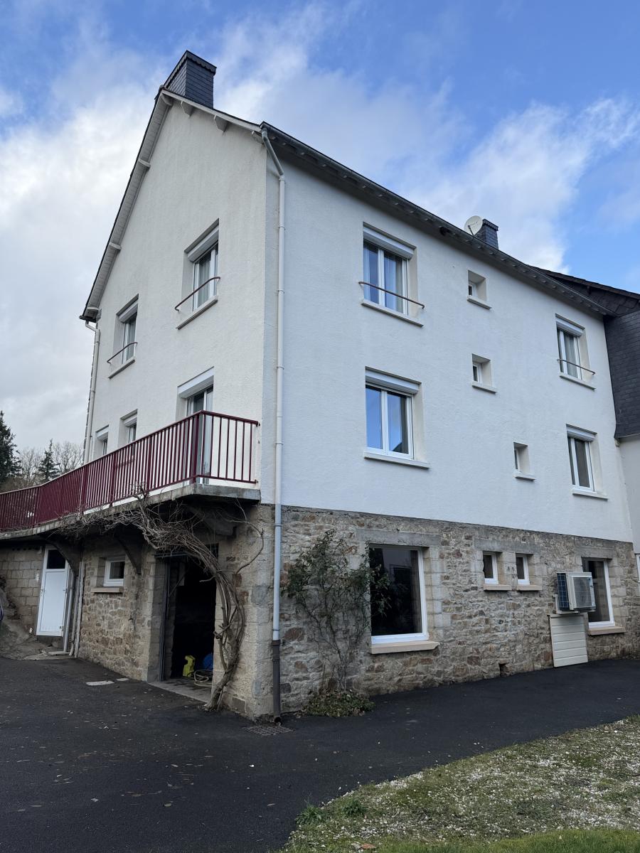 Belle maison mitoyenne en pierres, entièrement rénovée, élevée sur sous-sol intégral et comprenant en rez de chaussée, une cuisine meublée et équipée, salle à manger, salon (ou chambre) et balcon, salle d'eau, wc, buanderie ; étage sur dalle de 4 chambres, salle d'eau, wc ; grenier au-dessus. Jardin. L'ensemble sur 472 m2 de terrain. Vaste garage en sous-sol.